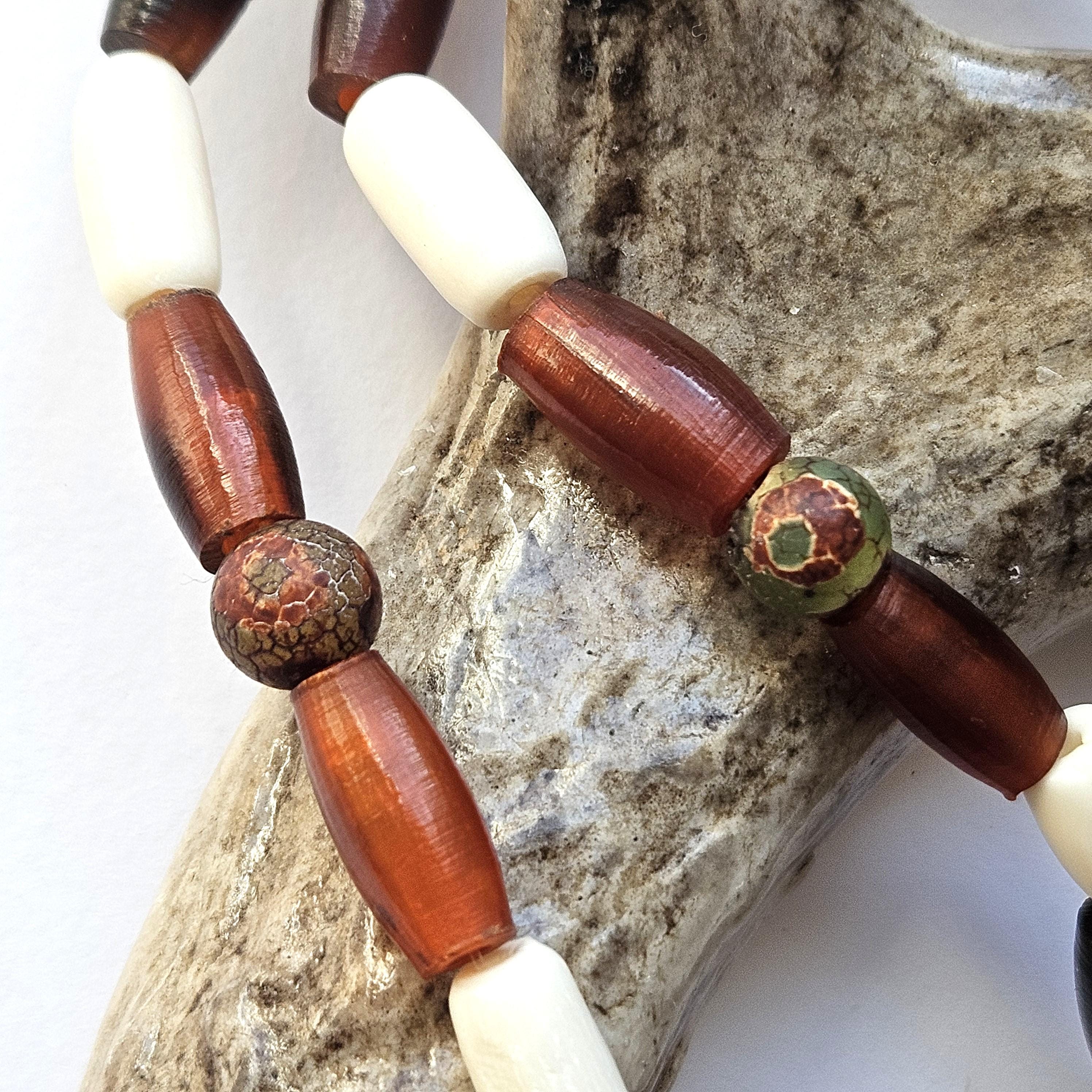 Beads: horn, bone, stone
