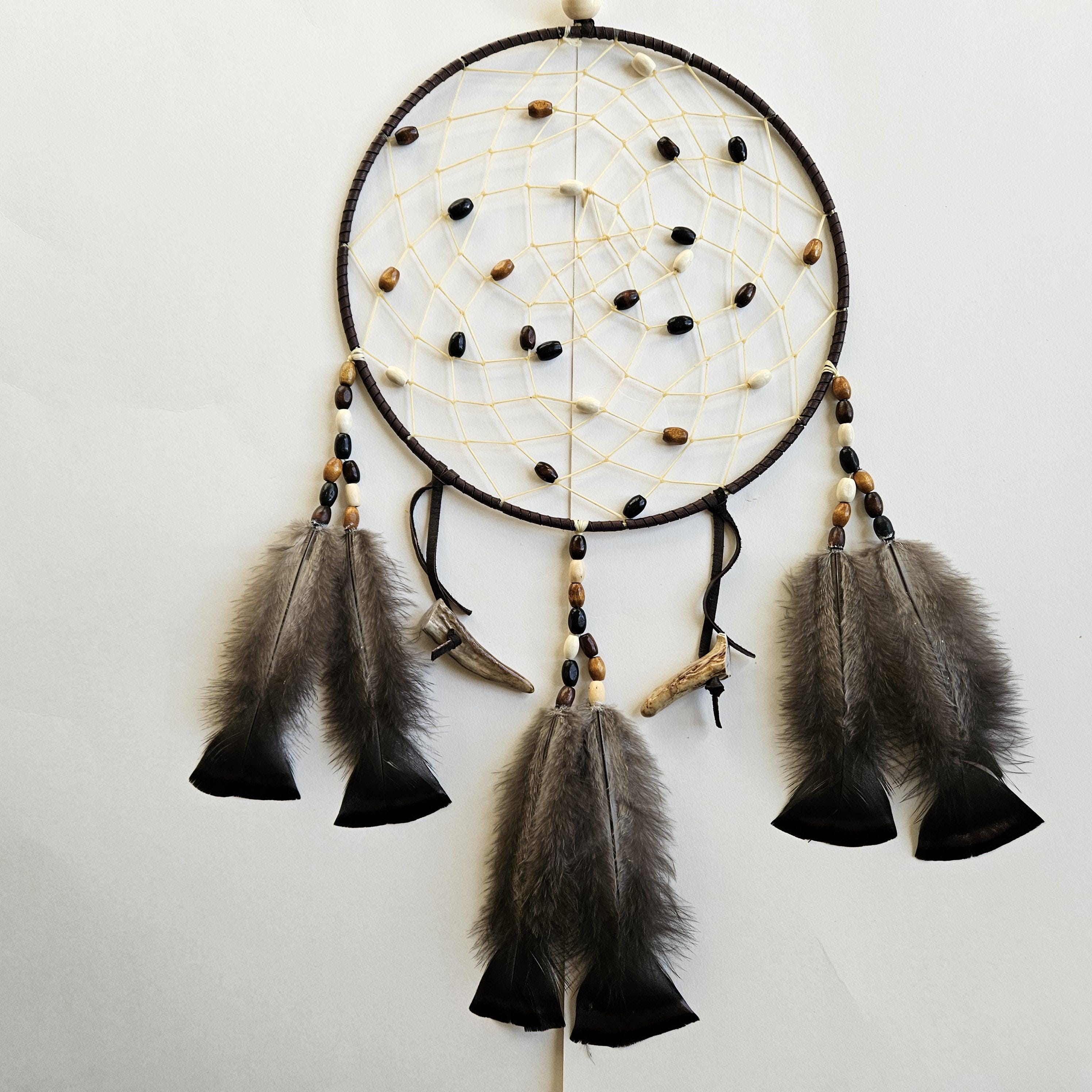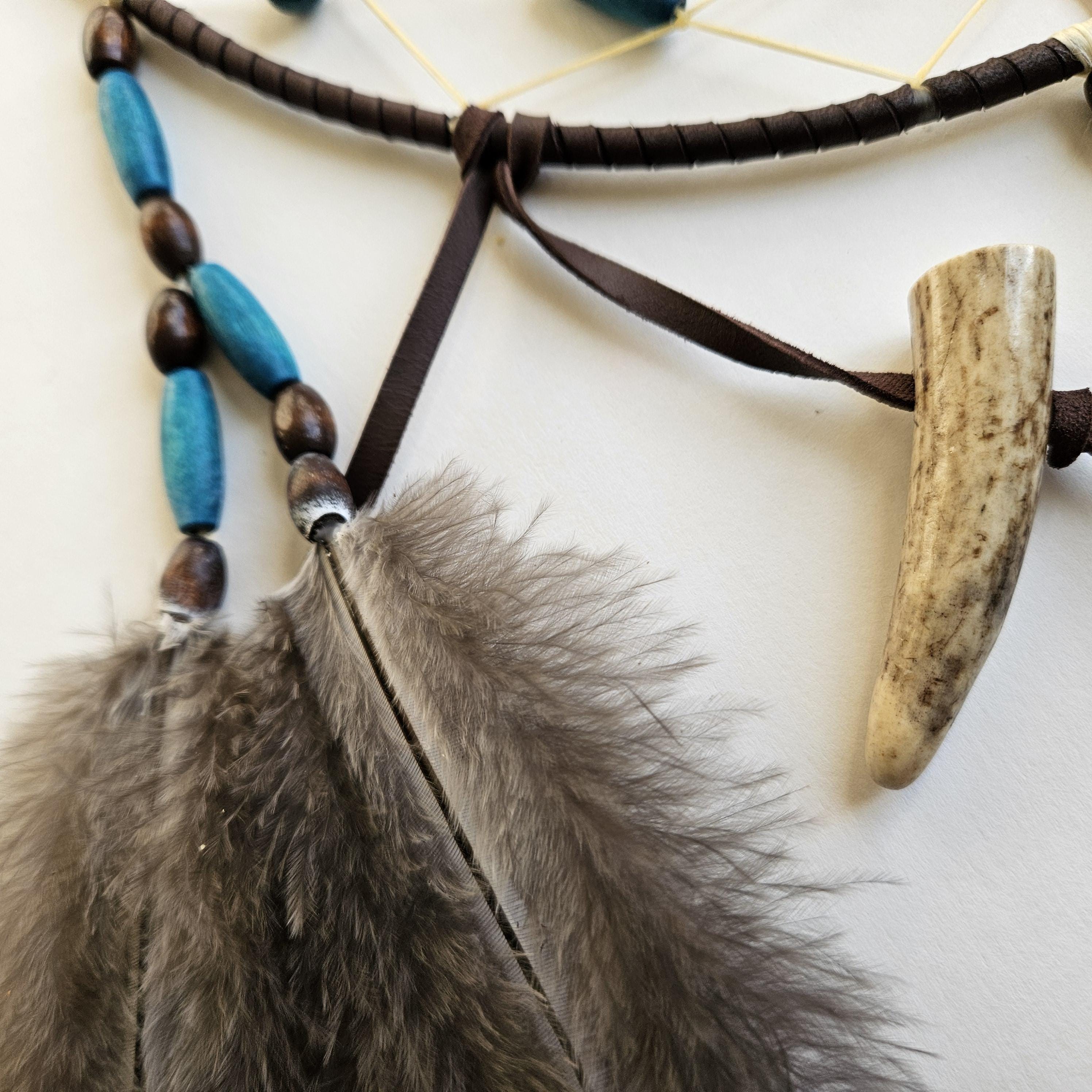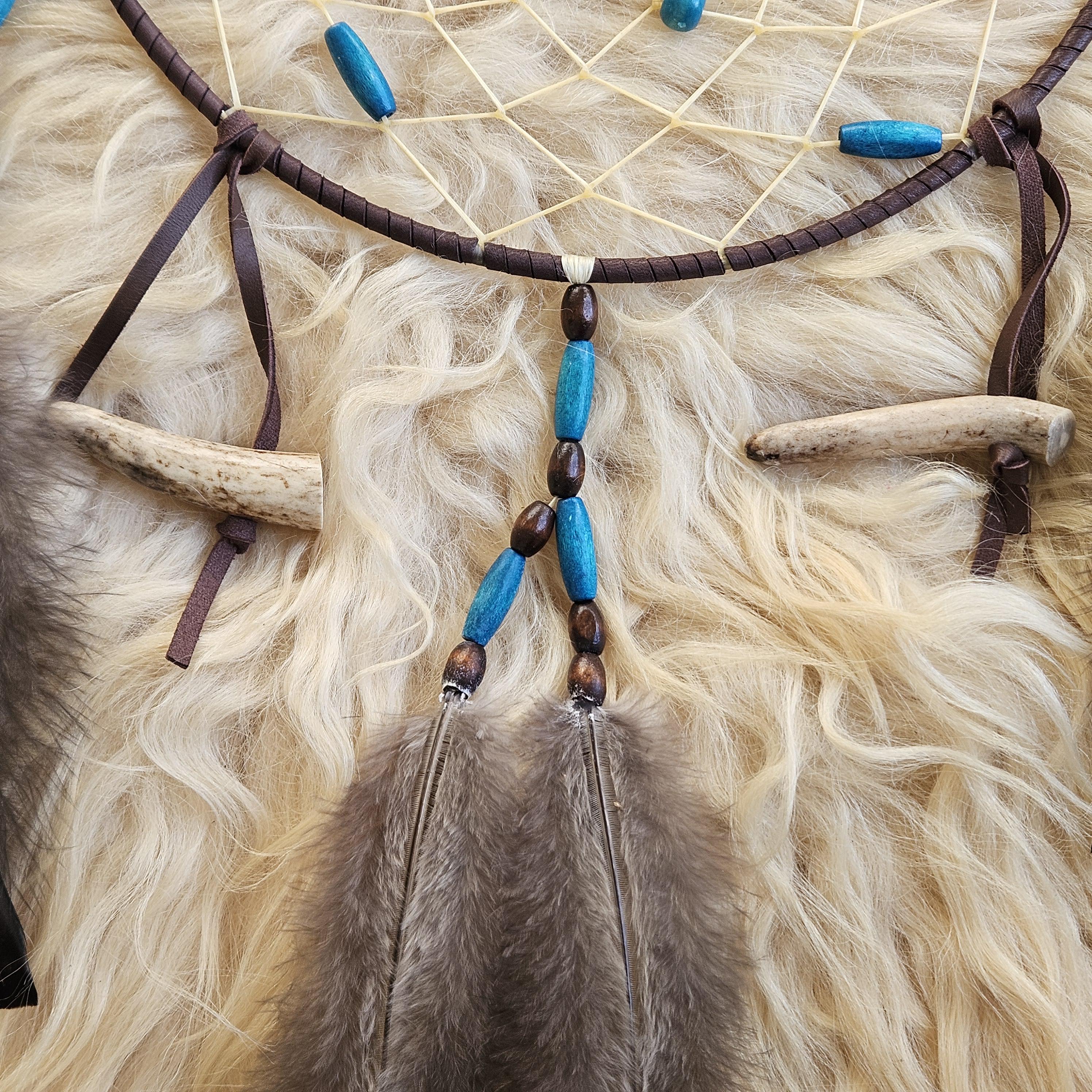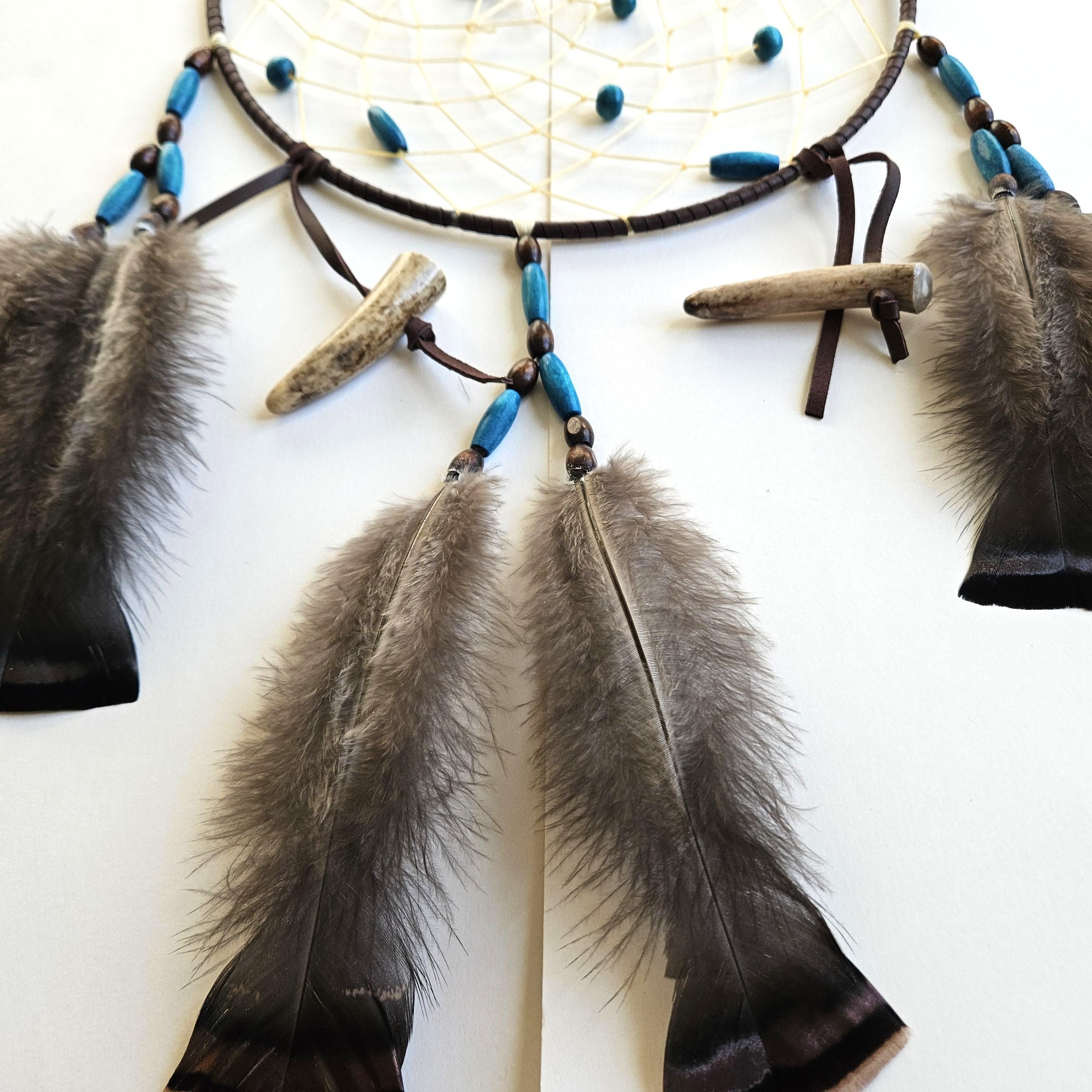 Consider pairing with a small leather medicine pouch (sweetgrass, tobacco, sage, cedar) to do a smudging ritual on your new dreamcatcher. For the Anishinaabe/Ojibwe, smudging is an essential aspect of their spiritual practice to bring positive energy to an item or space.