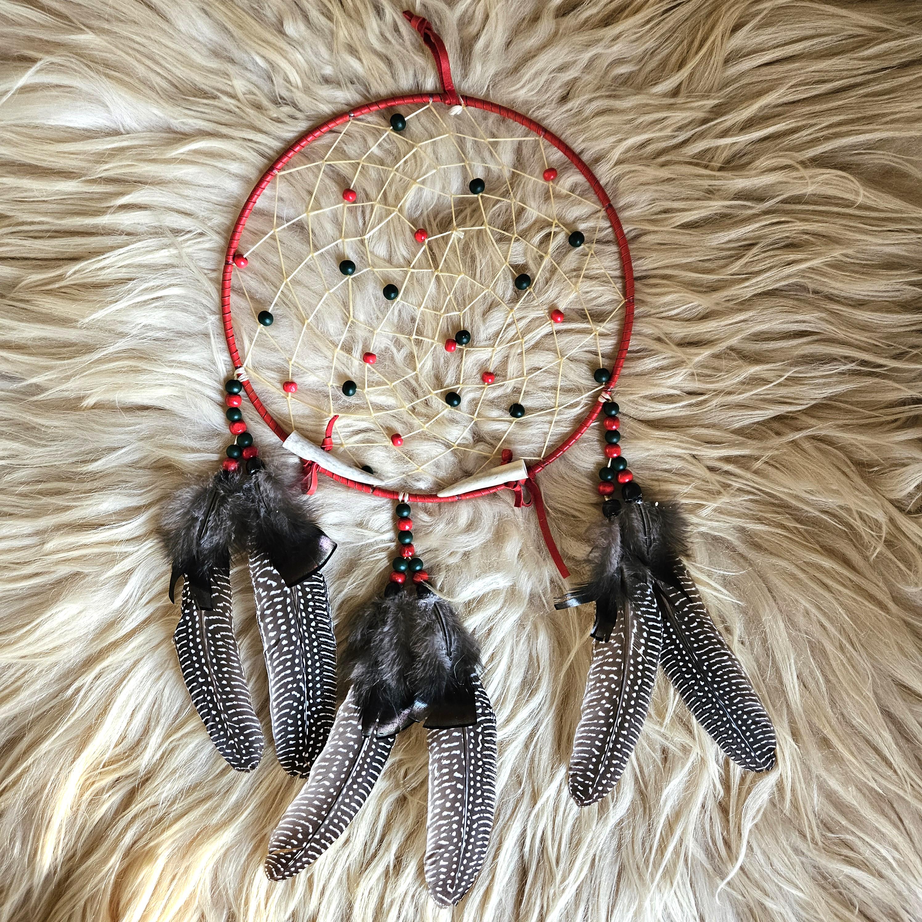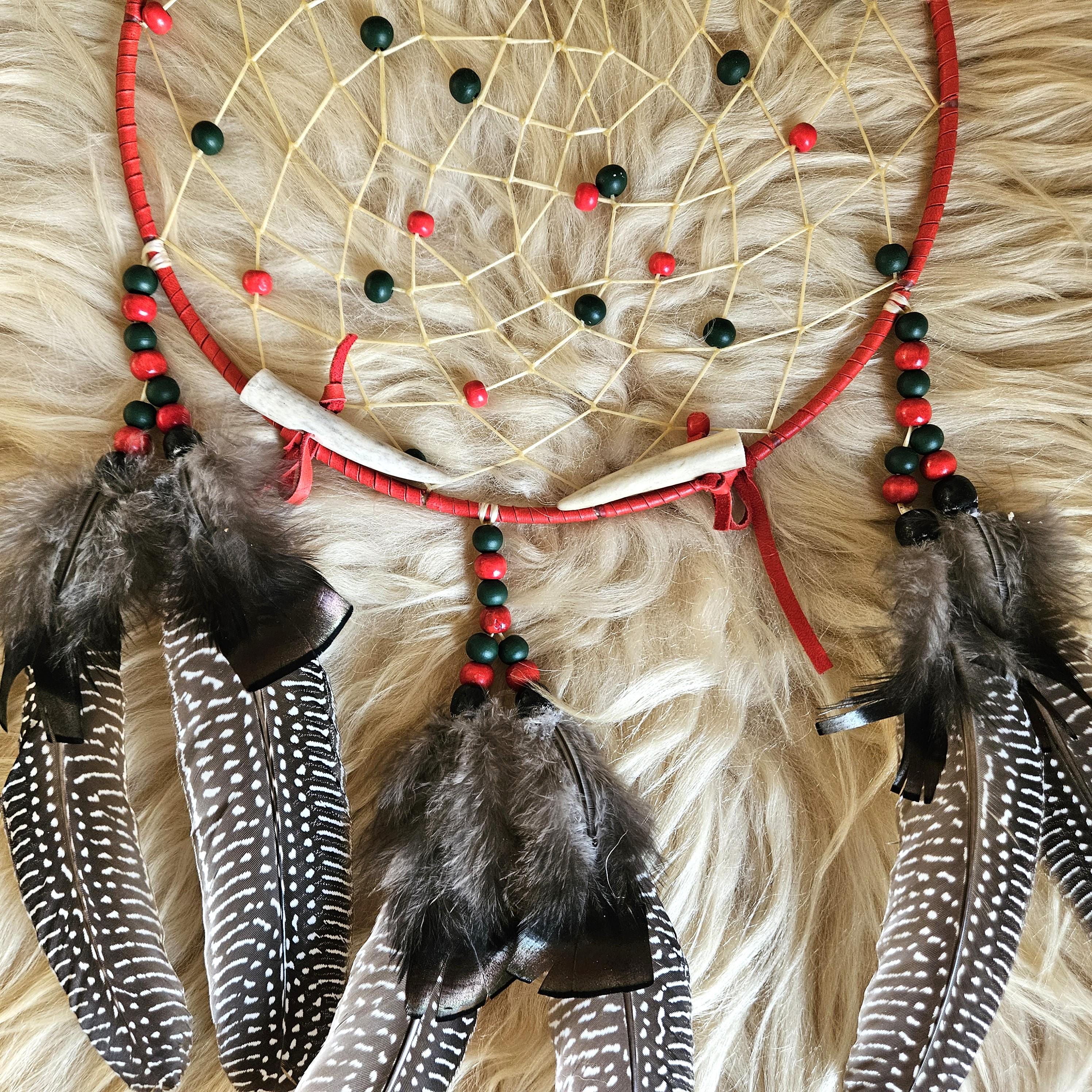 Consider pairing with a small leather medicine pouch (sweetgrass, tobacco, sage, cedar) to do a smudging ritual on your new dreamcatcher. For the Anishinaabe/Ojibwe, smudging is an essential aspect of their spiritual practice to bring positive energy to an item or space.