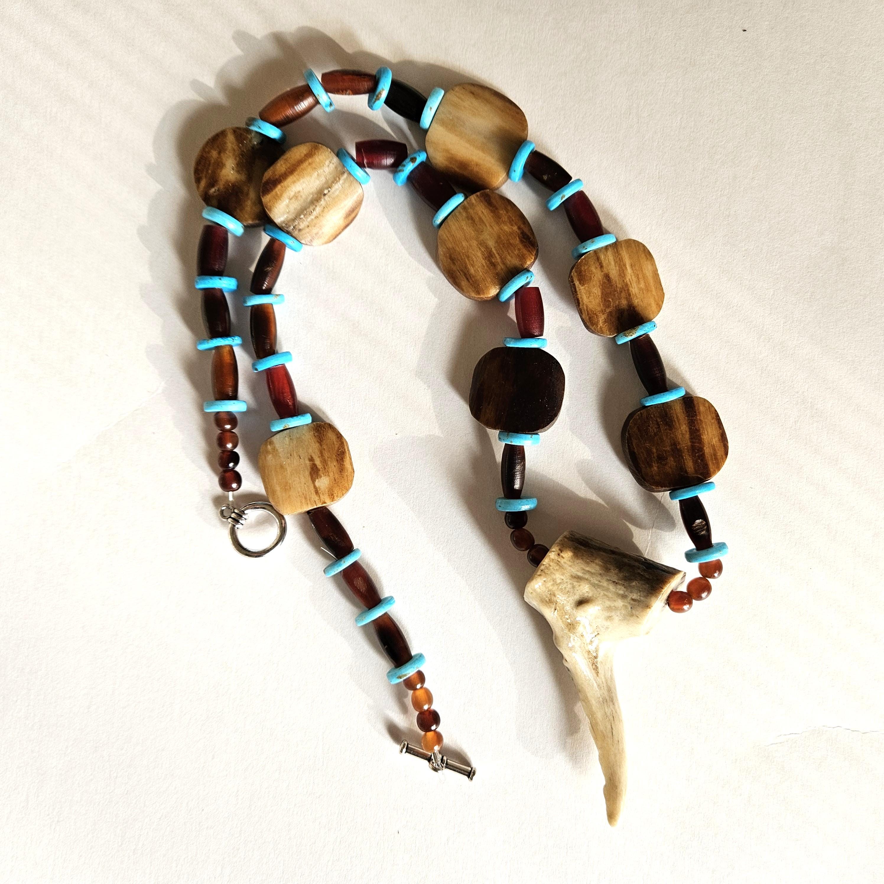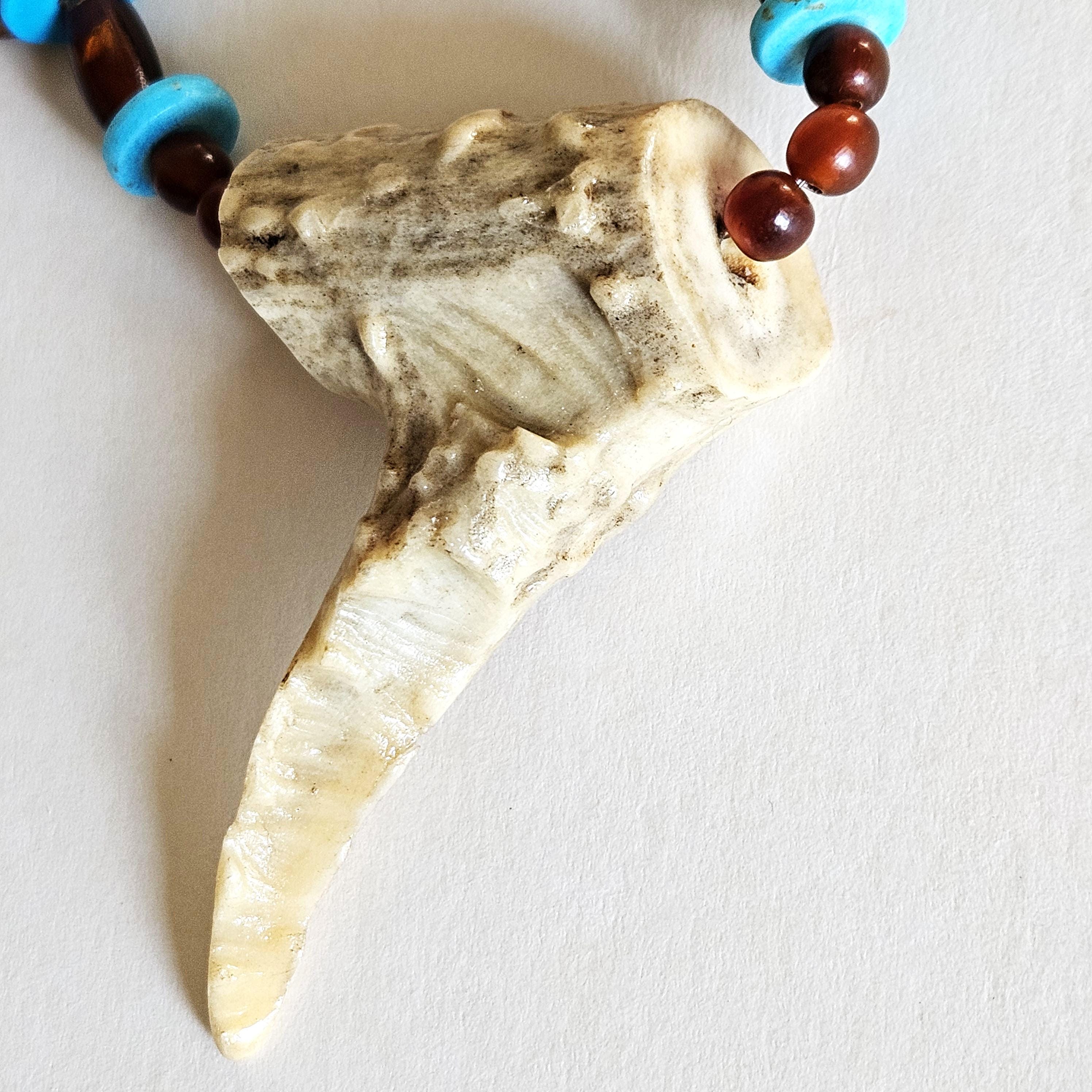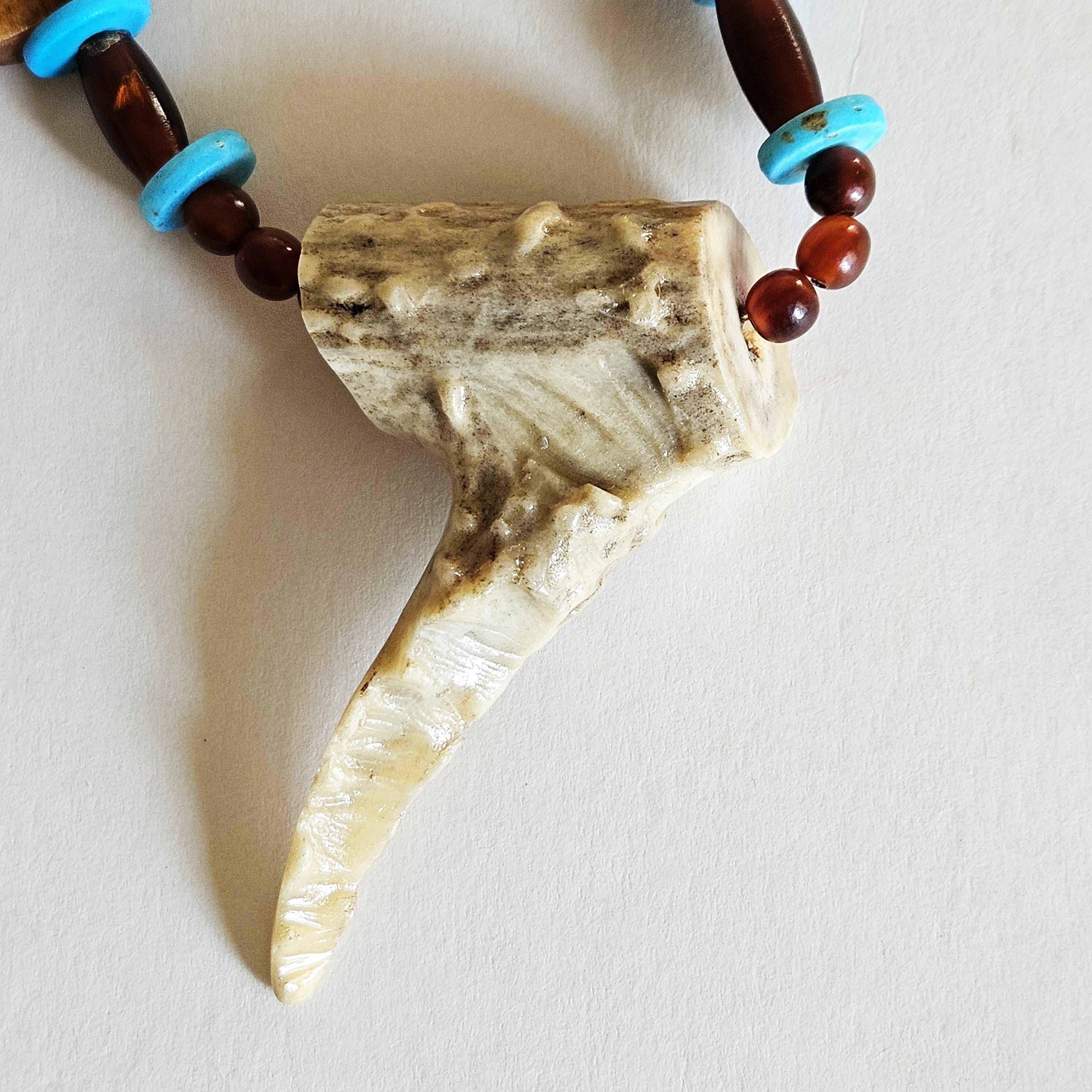 After I cut up the antler into the pieces I want, I sand down the edges with a Dremel tool to make the antler piece smooth on all sides and edges. I will then put on 2-3 coats of clear lacquer giving the antler pieces a shine which not only protects the antler pieces but it brings out the antlers different colors and intricacies. All antler carvings are made with a Dremel tool and highlighted with black paint.