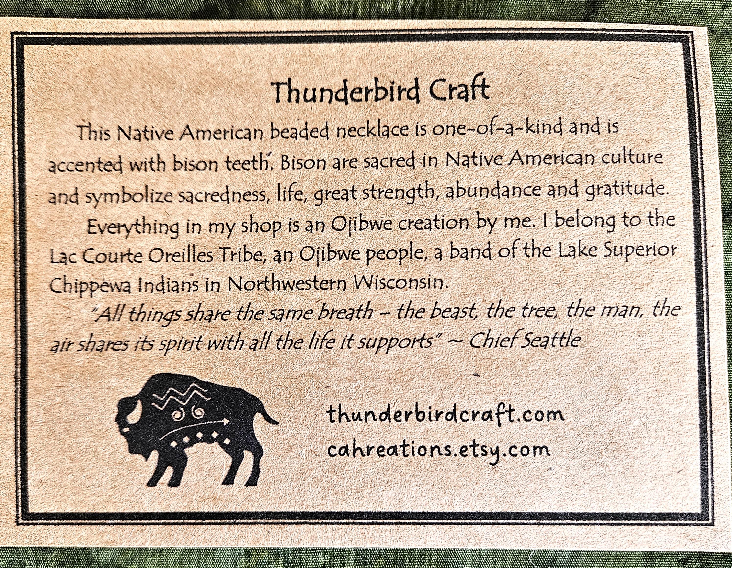 Everything in my shop is an authentic Native American creation by me. I belong to the Lac Courte Oreilles Tribe, an Ojibwe people, a band of the Lake Superior Chippewa Indians in Northwestern Wisconsin.
