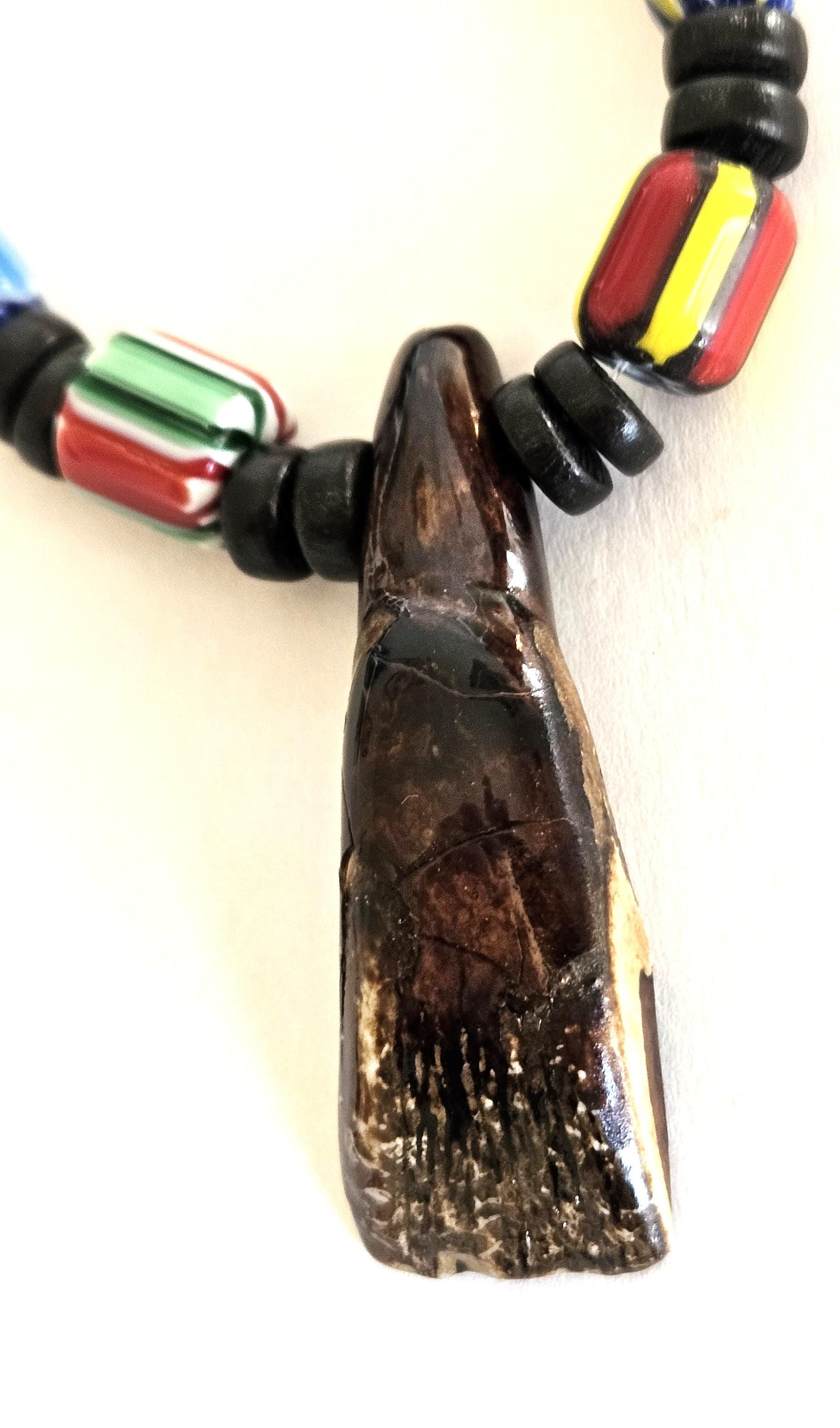 After I cut up the antler into the pieces I want, I sand down the edges with a Dremel tool to make the antler piece smooth on all sides and edges. I will then put on 2-3 coats of clear lacquer giving the antler pieces a shine which not only protects the antler pieces but it brings out the antlers different colors and intricacies. All antler carvings are made with a Dremel tool and highlighted with black paint.