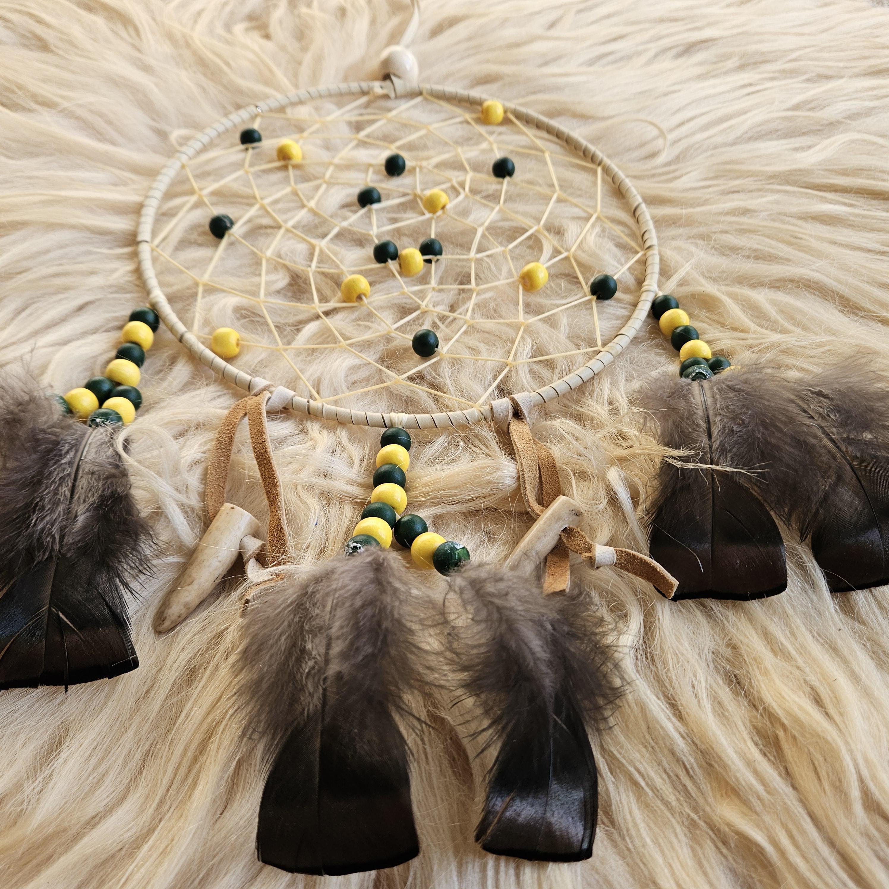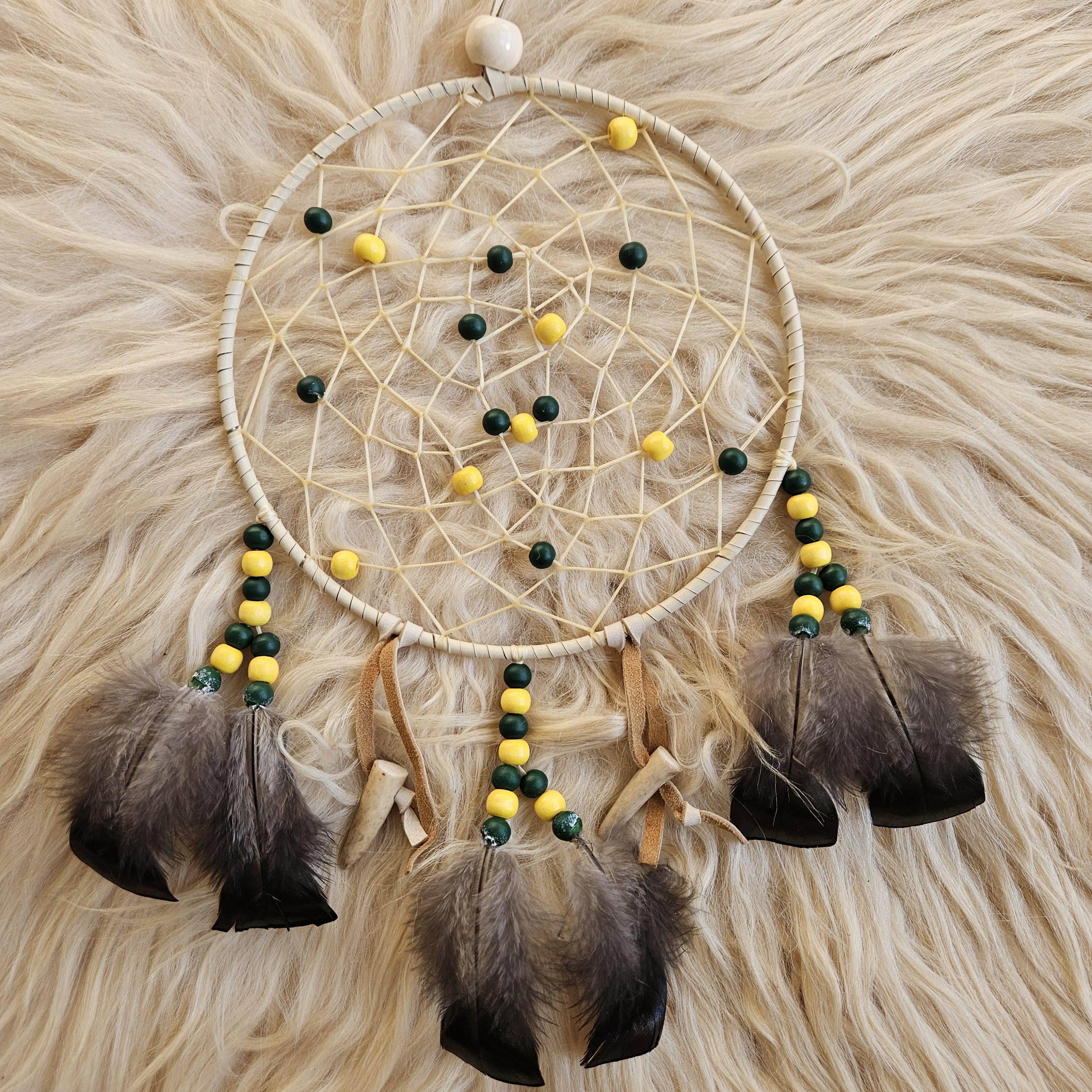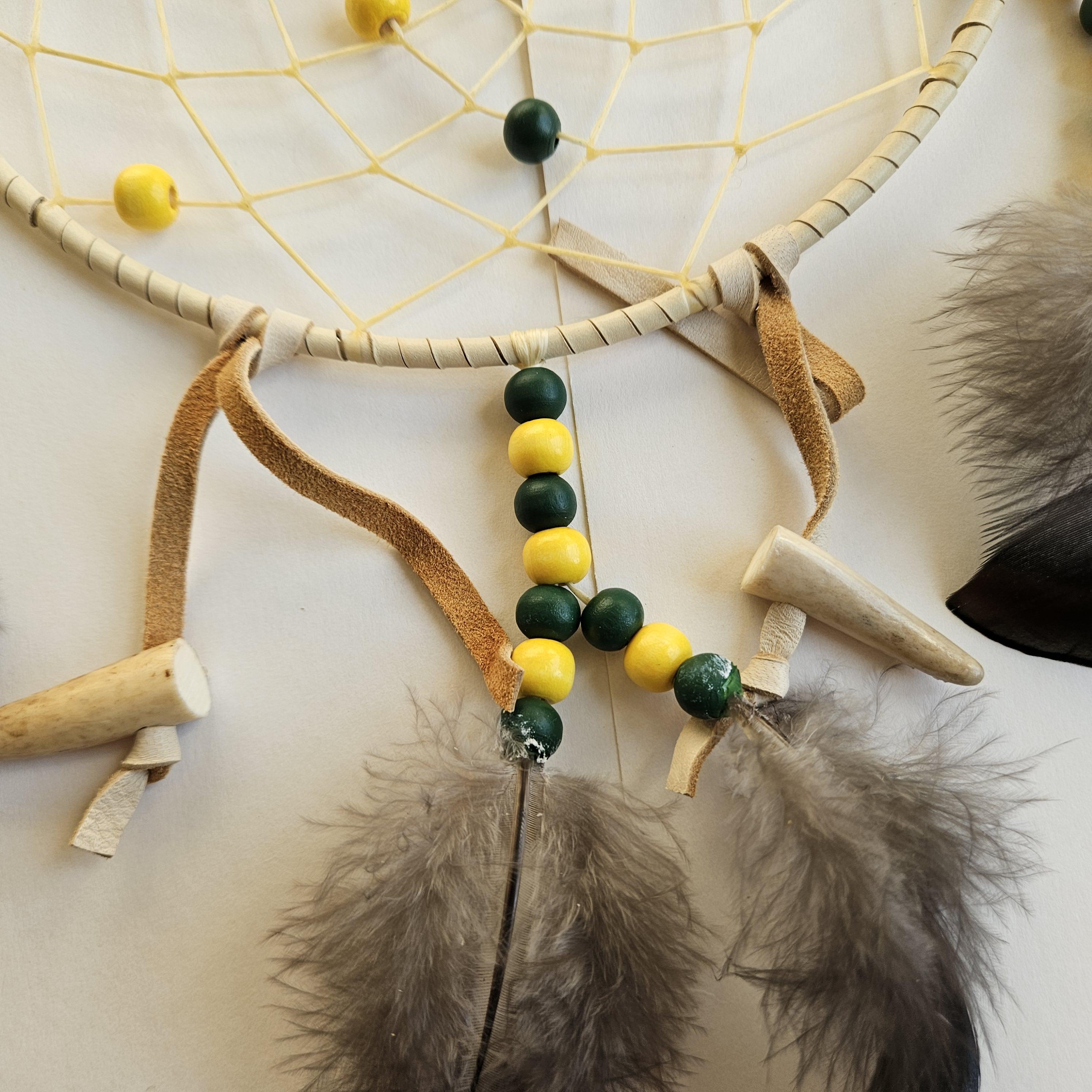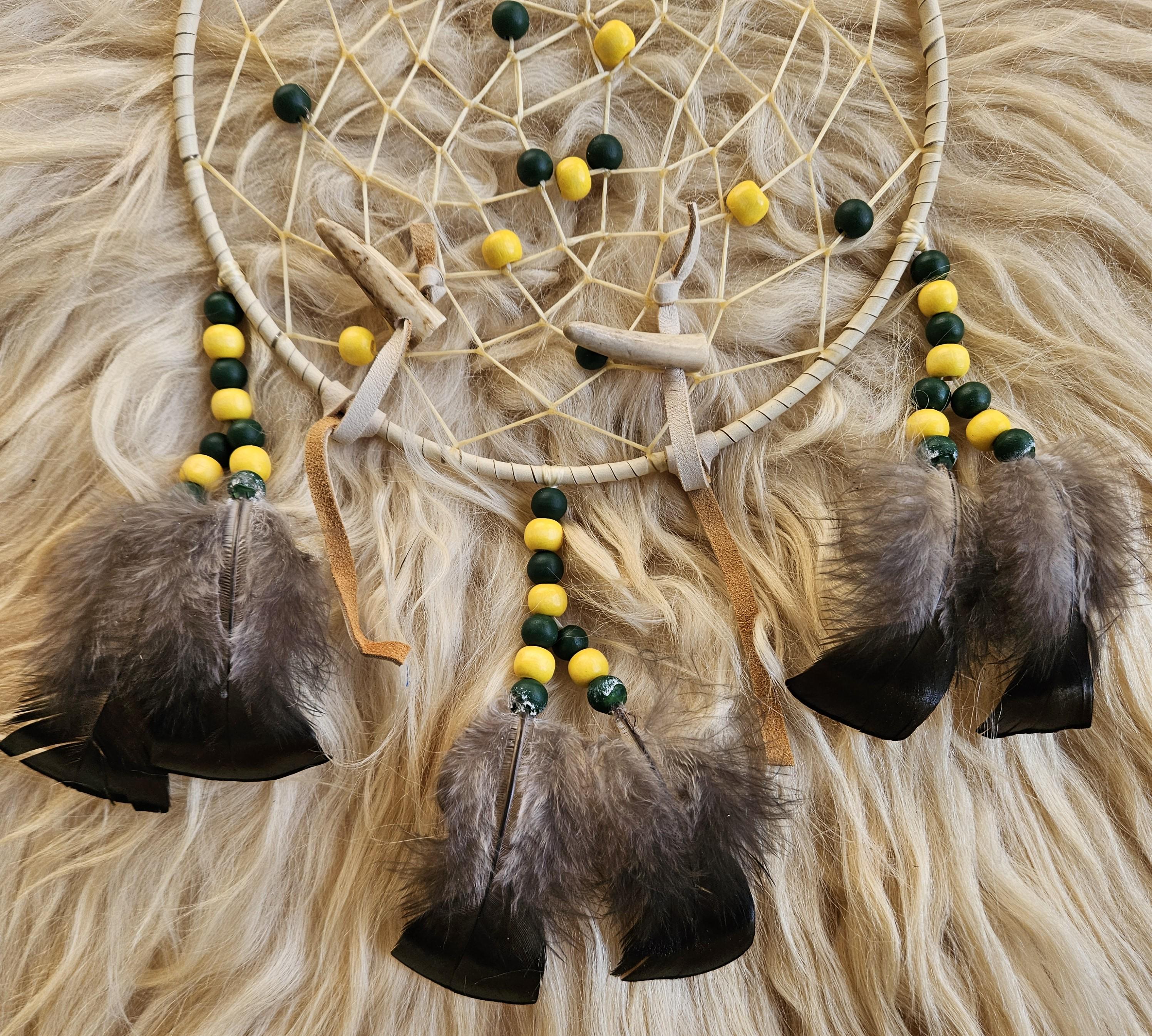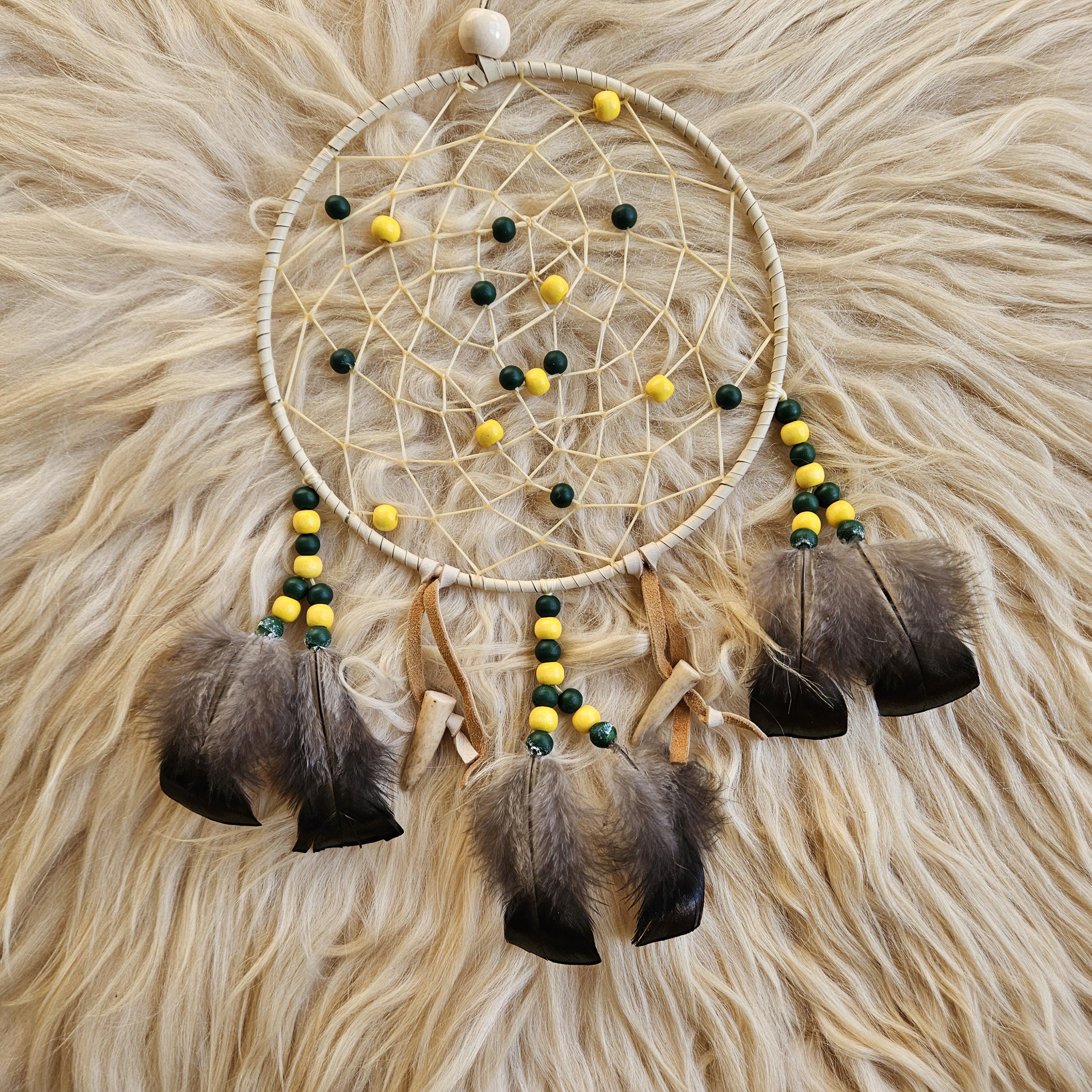 Consider pairing with a small leather medicine pouch (sweetgrass, tobacco, sage, cedar) to do a smudging ritual on your new dreamcatcher. For the Anishinaabe/Ojibwe, smudging is an essential aspect of their spiritual practice to bring positive energy to an item or space.