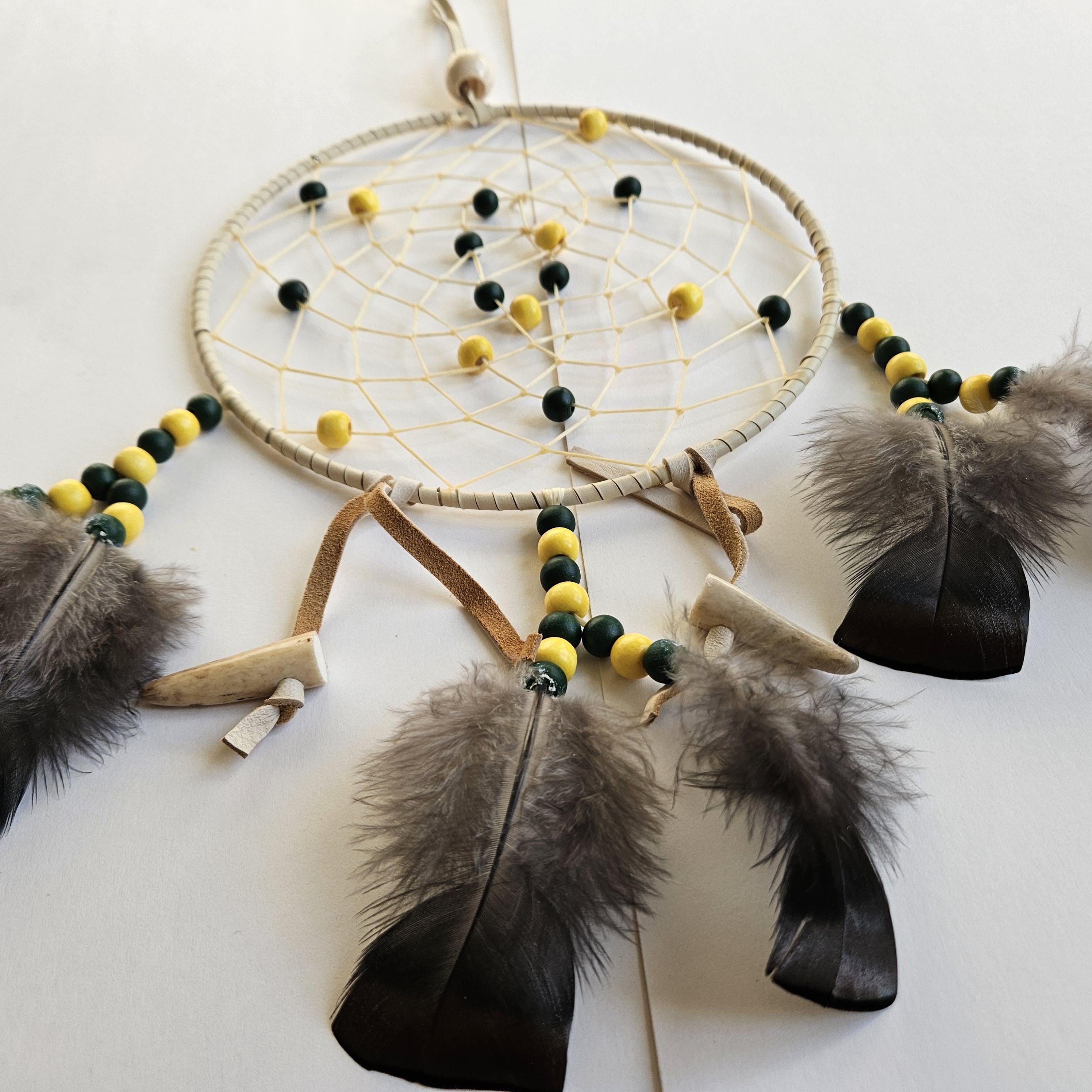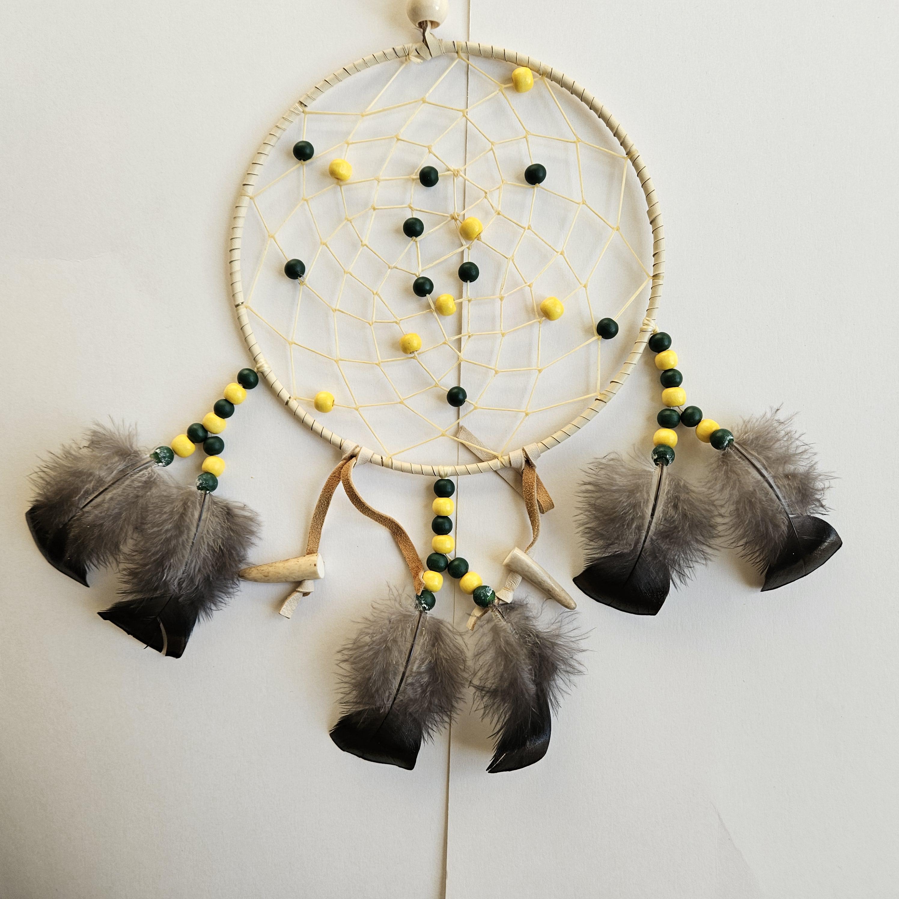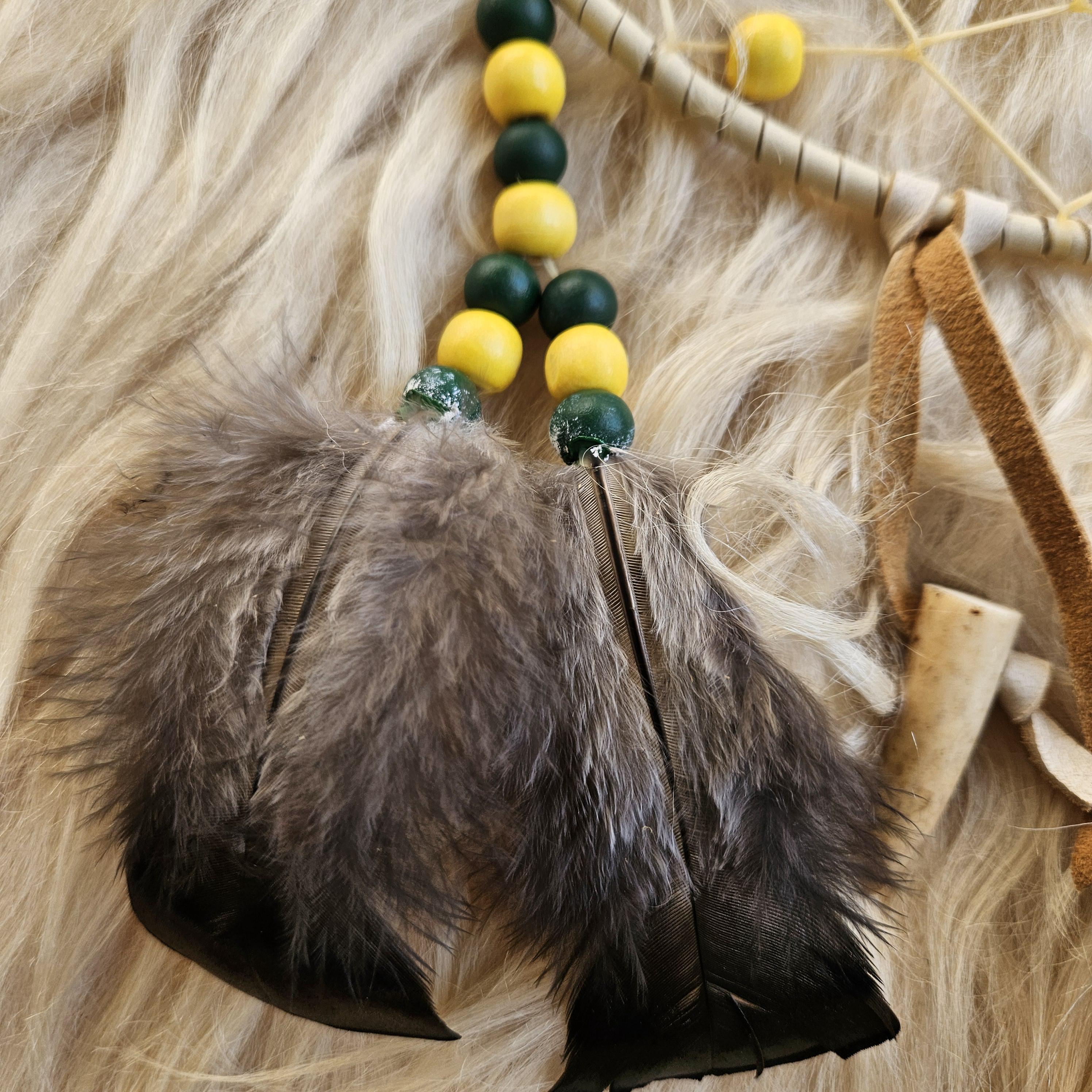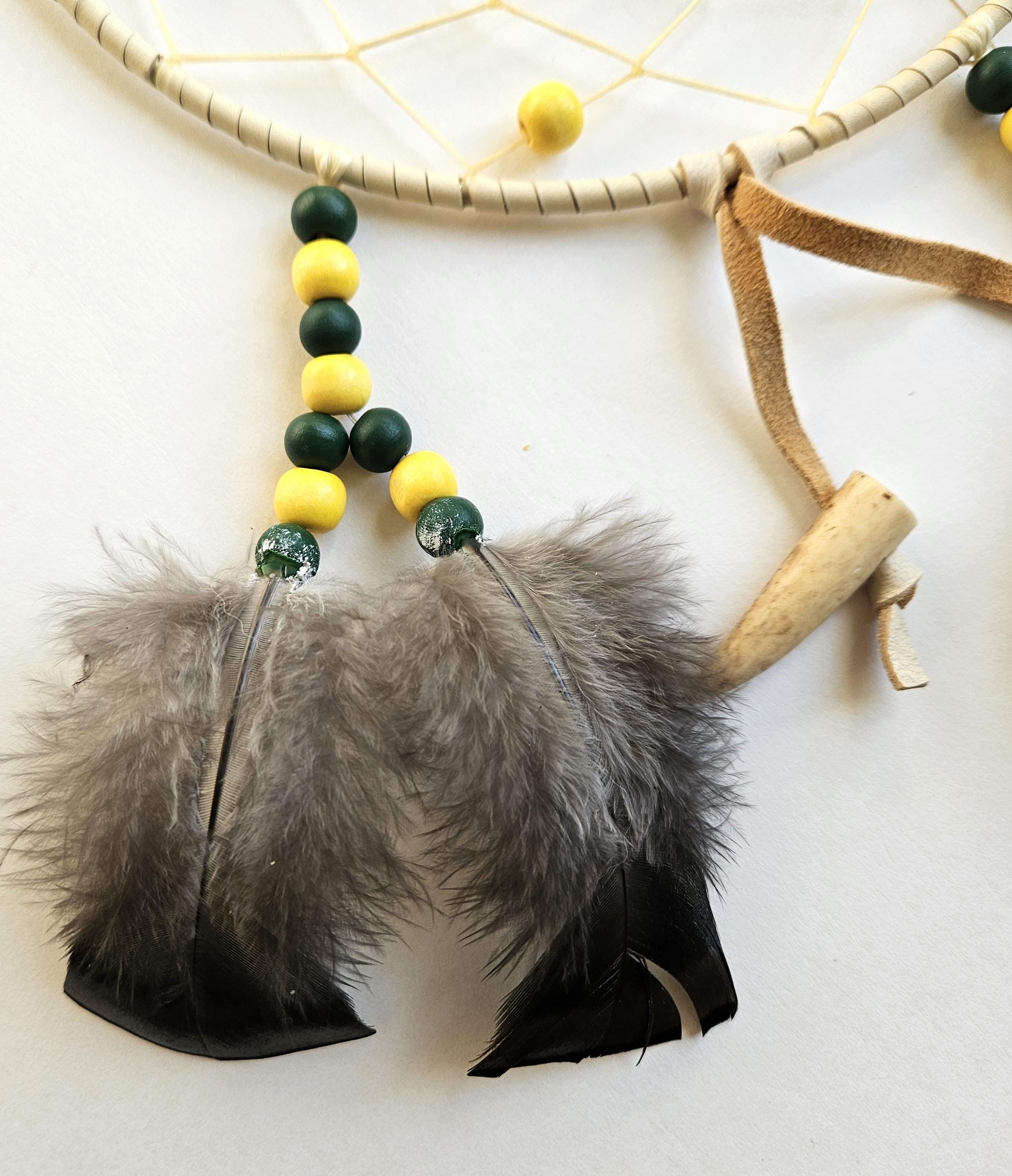 Ojibwe Green Bay Packers Dreamcatcher with antler and grouse feathers 8"