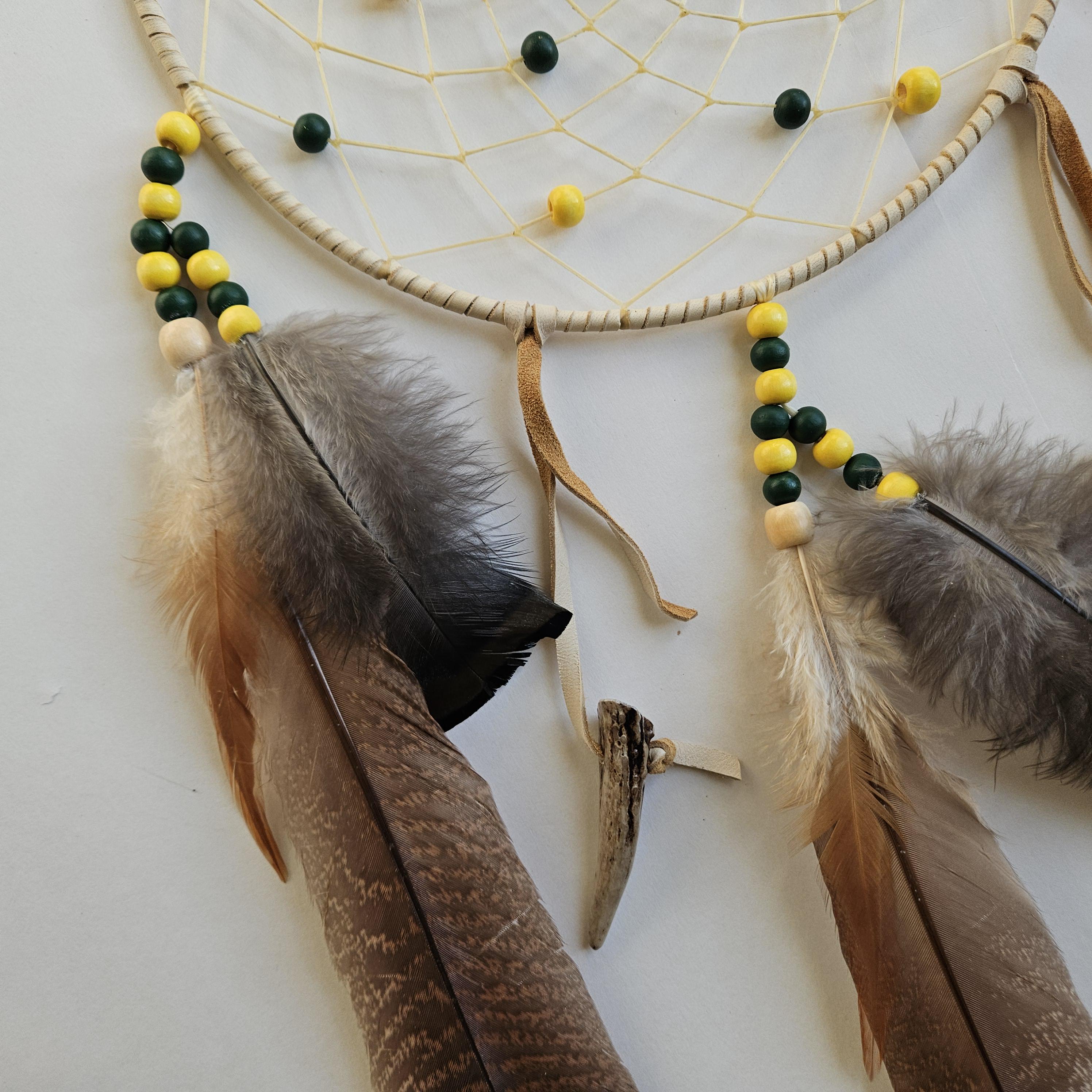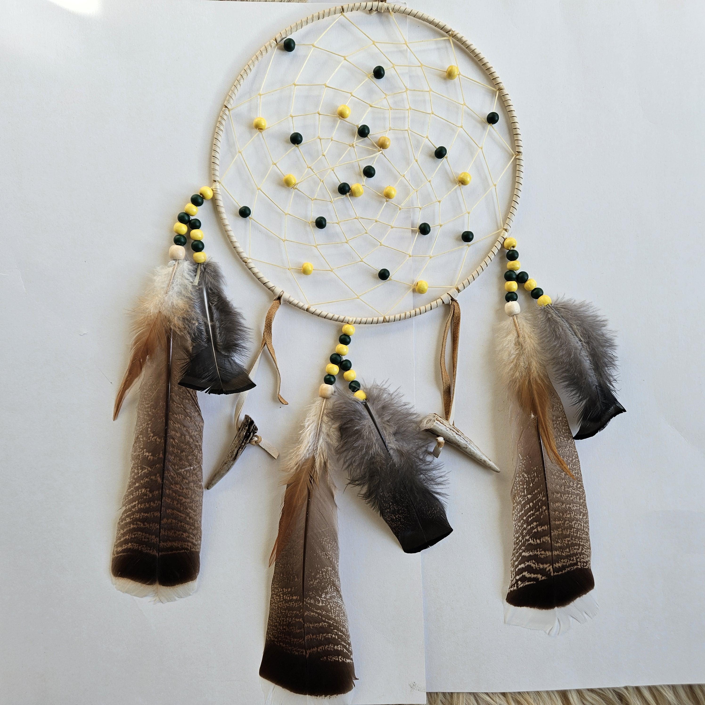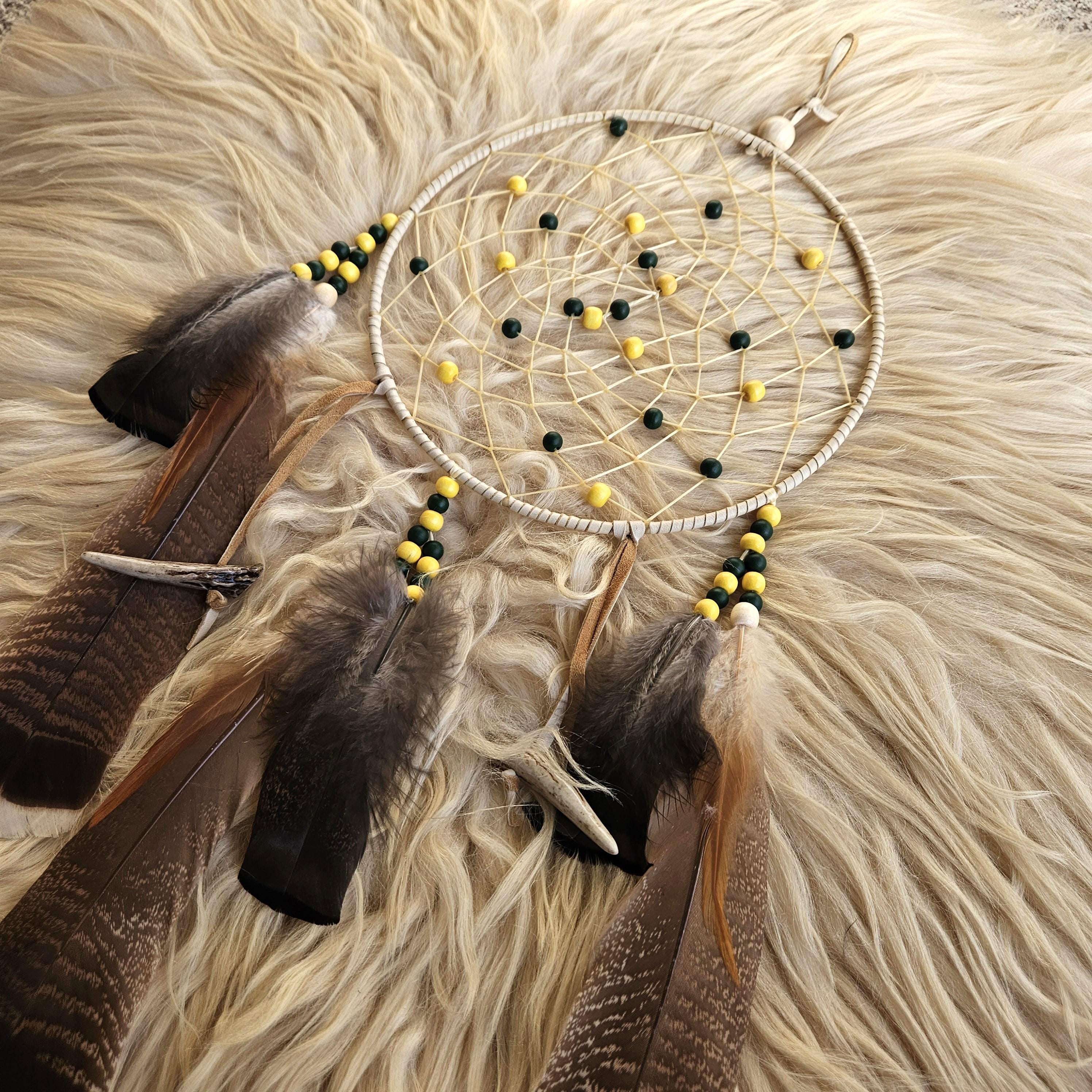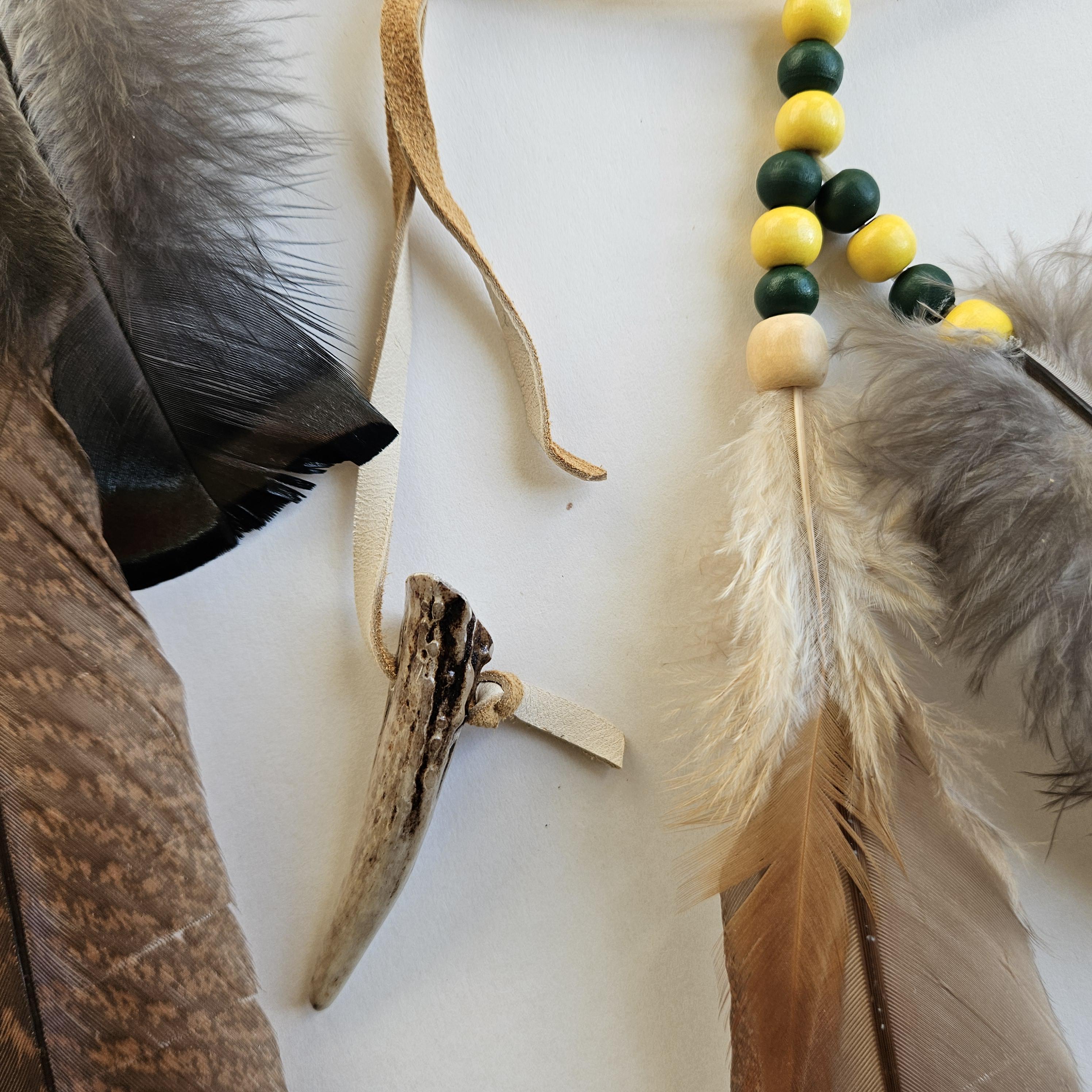 Consider pairing with a small leather medicine pouch (sweetgrass, tobacco, sage, cedar) to do a smudging ritual on your new dreamcatcher. For the Anishinaabe/Ojibwe, smudging is an essential aspect of their spiritual practice to bring positive energy to an item or space.