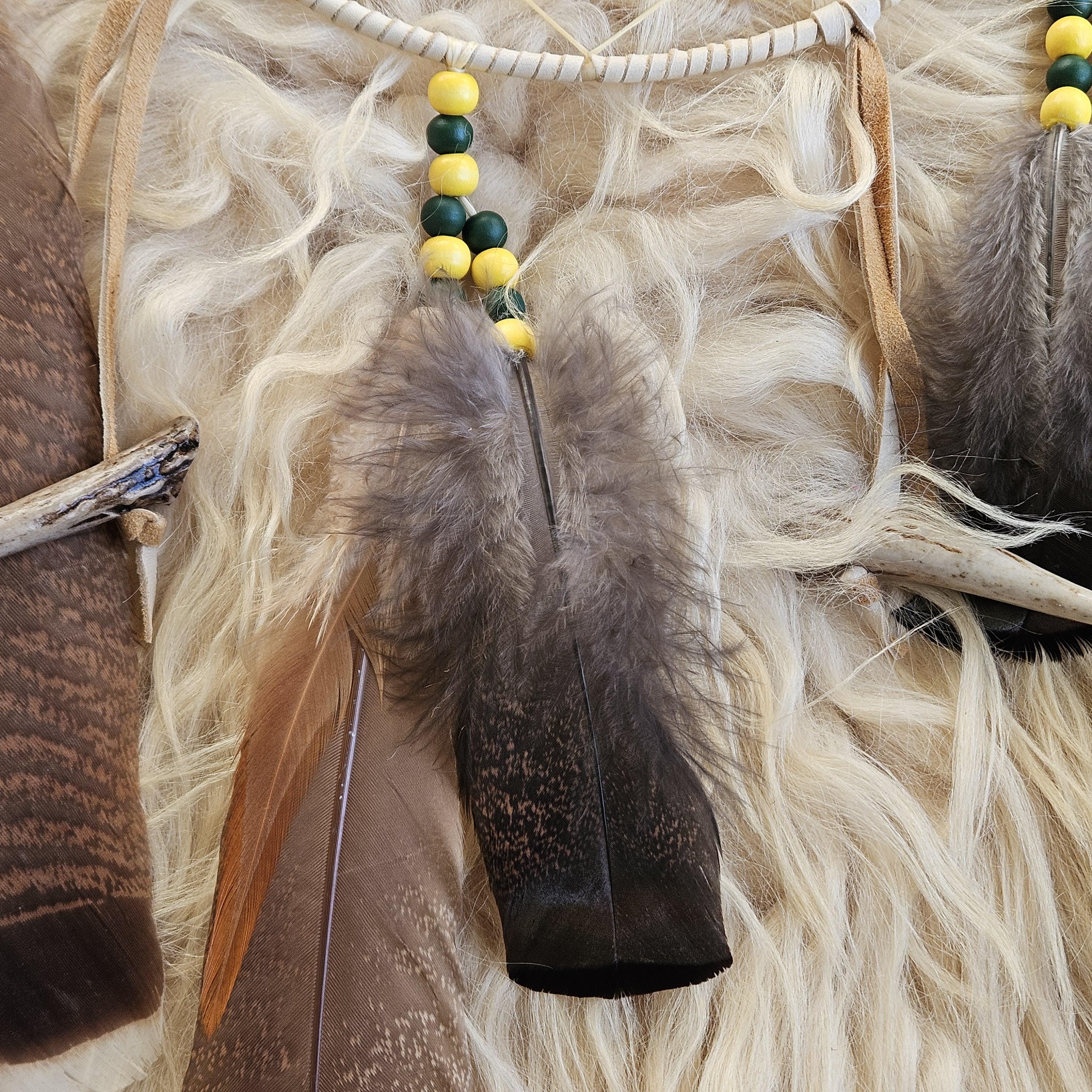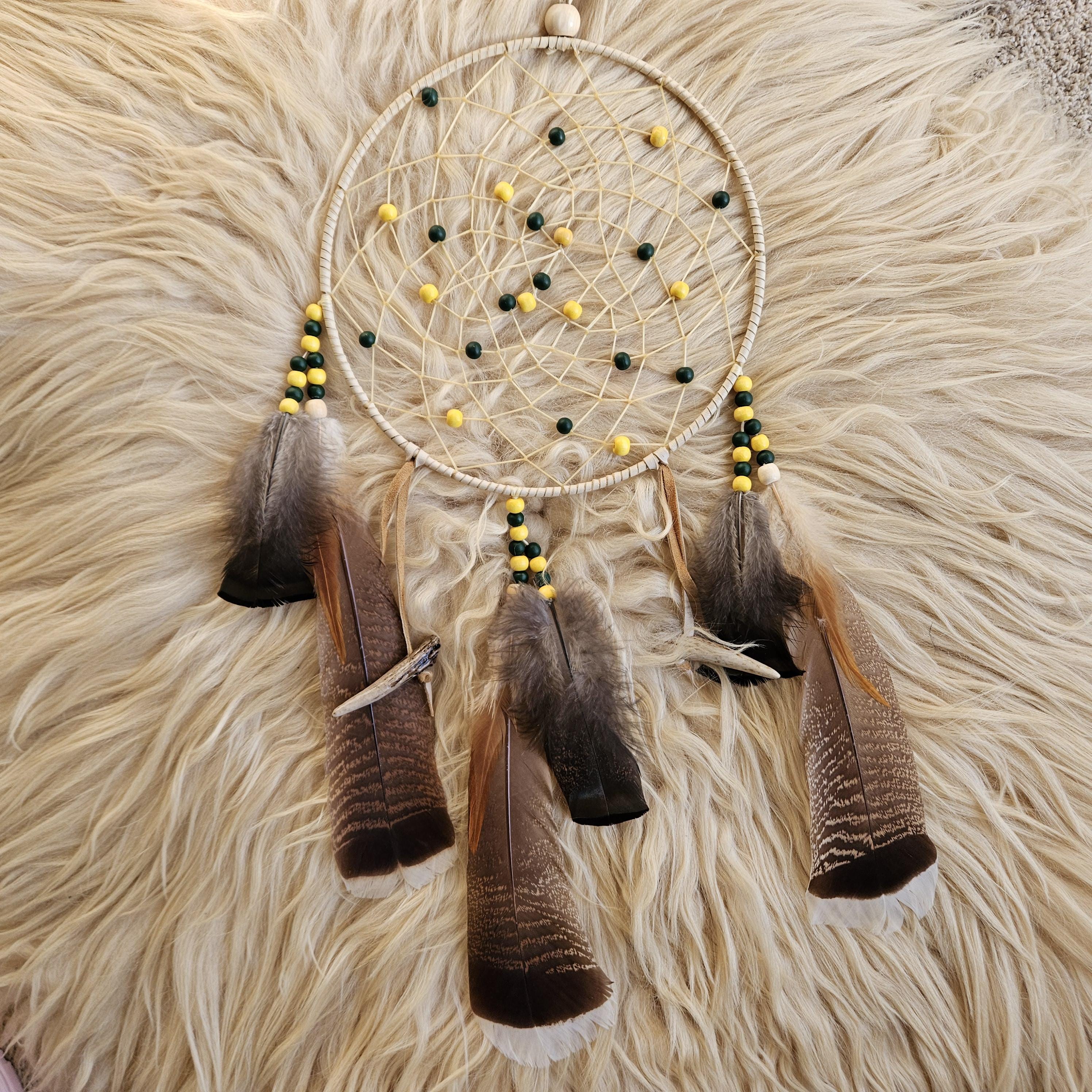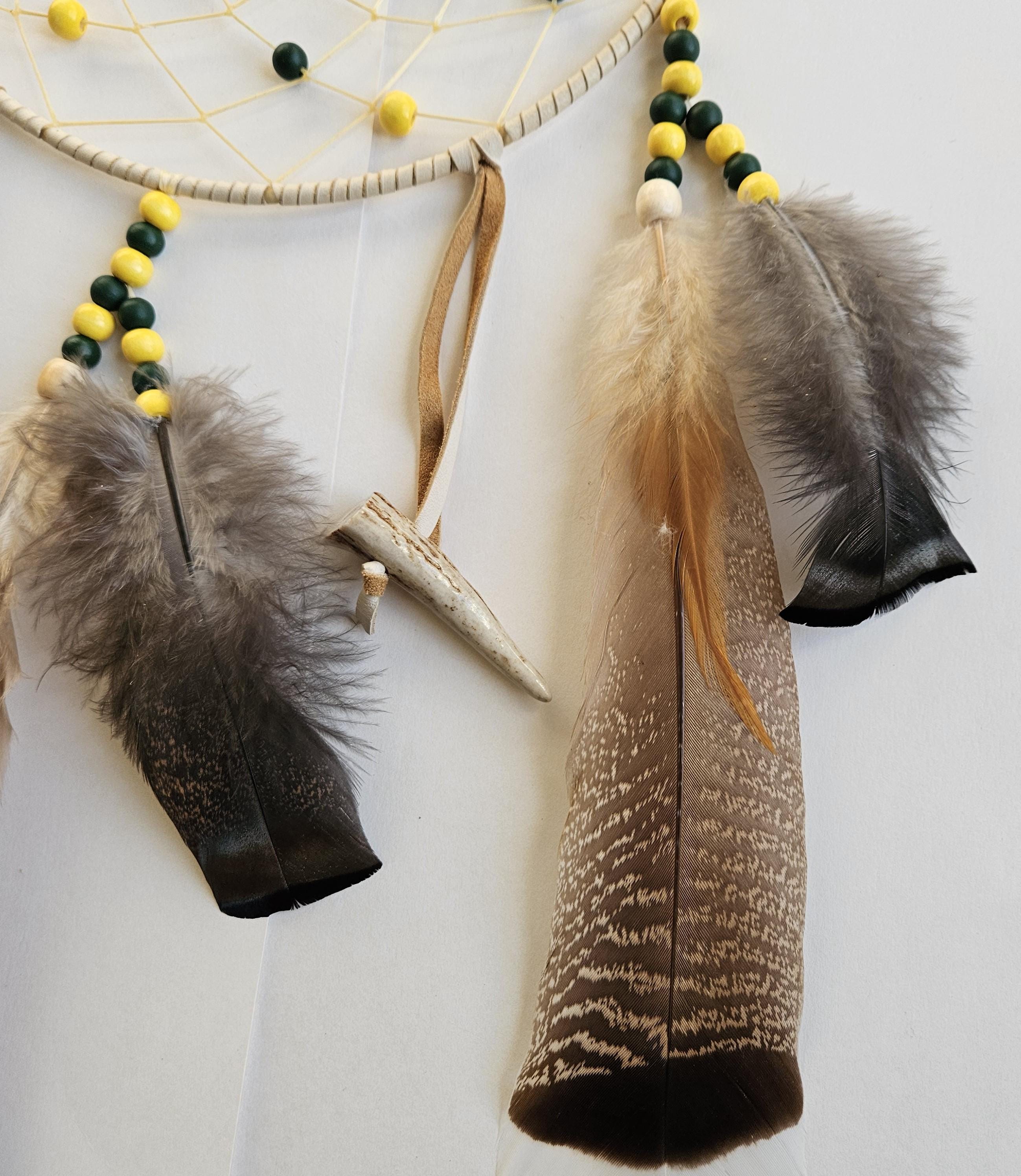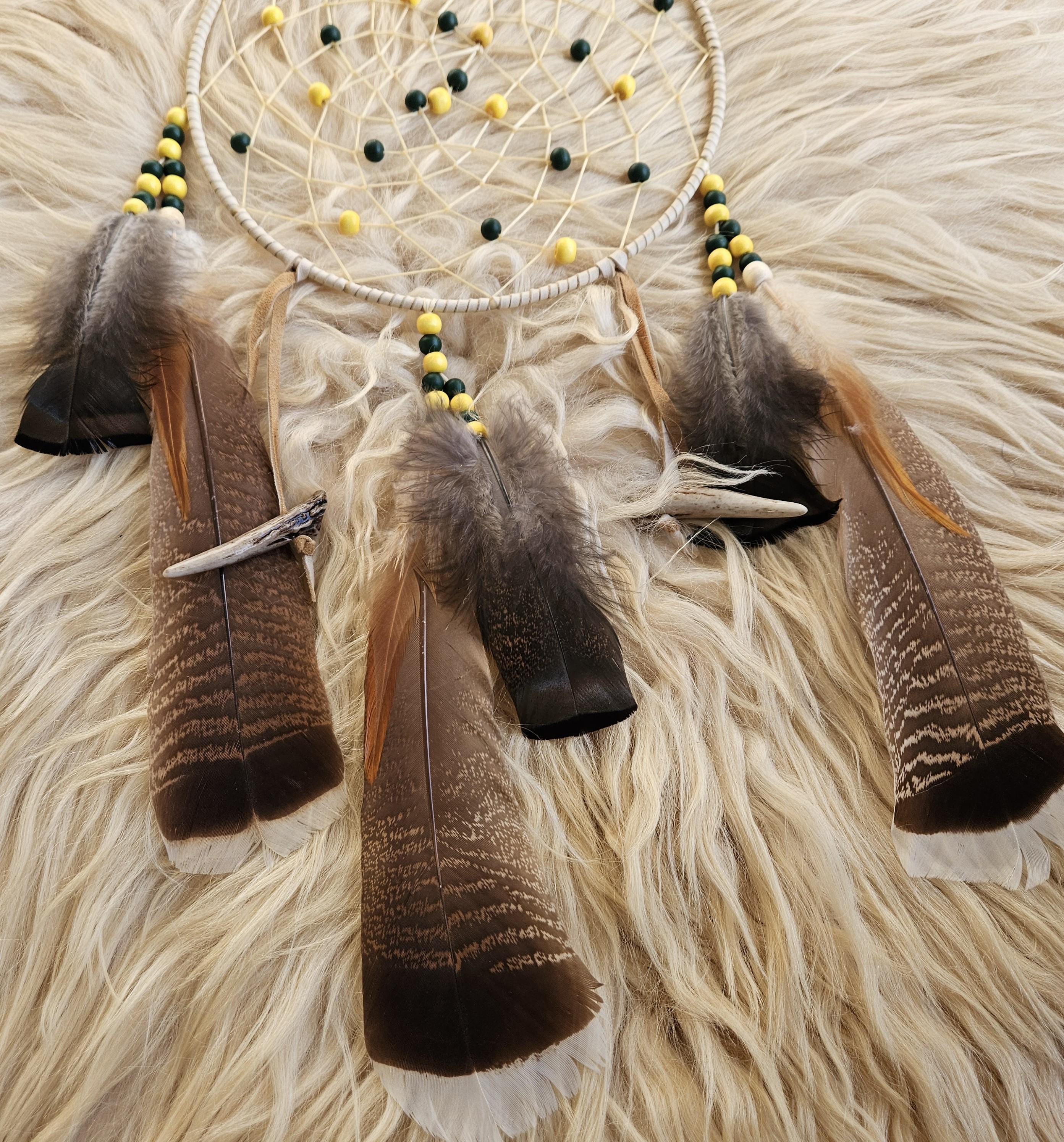 Consider pairing with a small leather medicine pouch (sweetgrass, tobacco, sage, cedar) to do a smudging ritual on your new dreamcatcher. For the Anishinaabe/Ojibwe, smudging is an essential aspect of their spiritual practice to bring positive energy to an item or space.