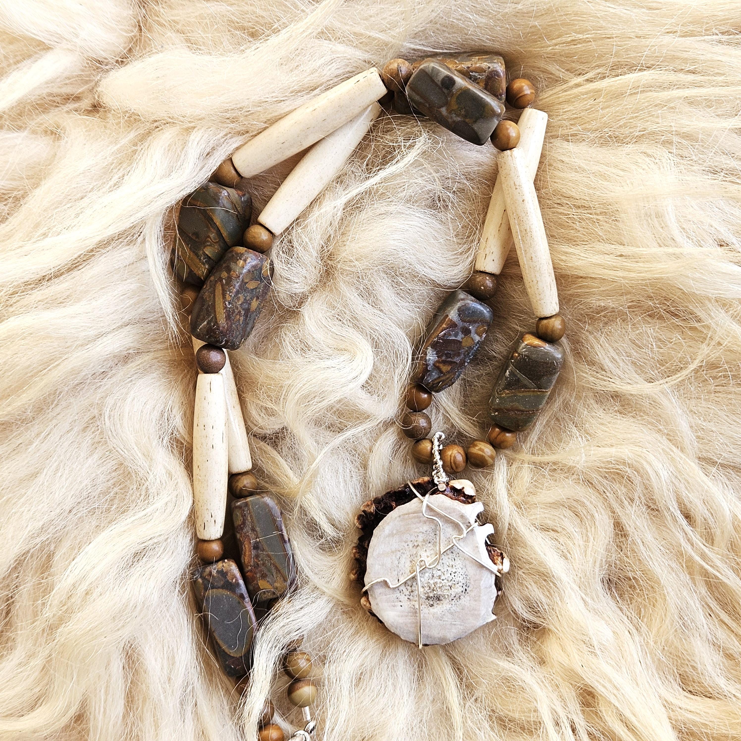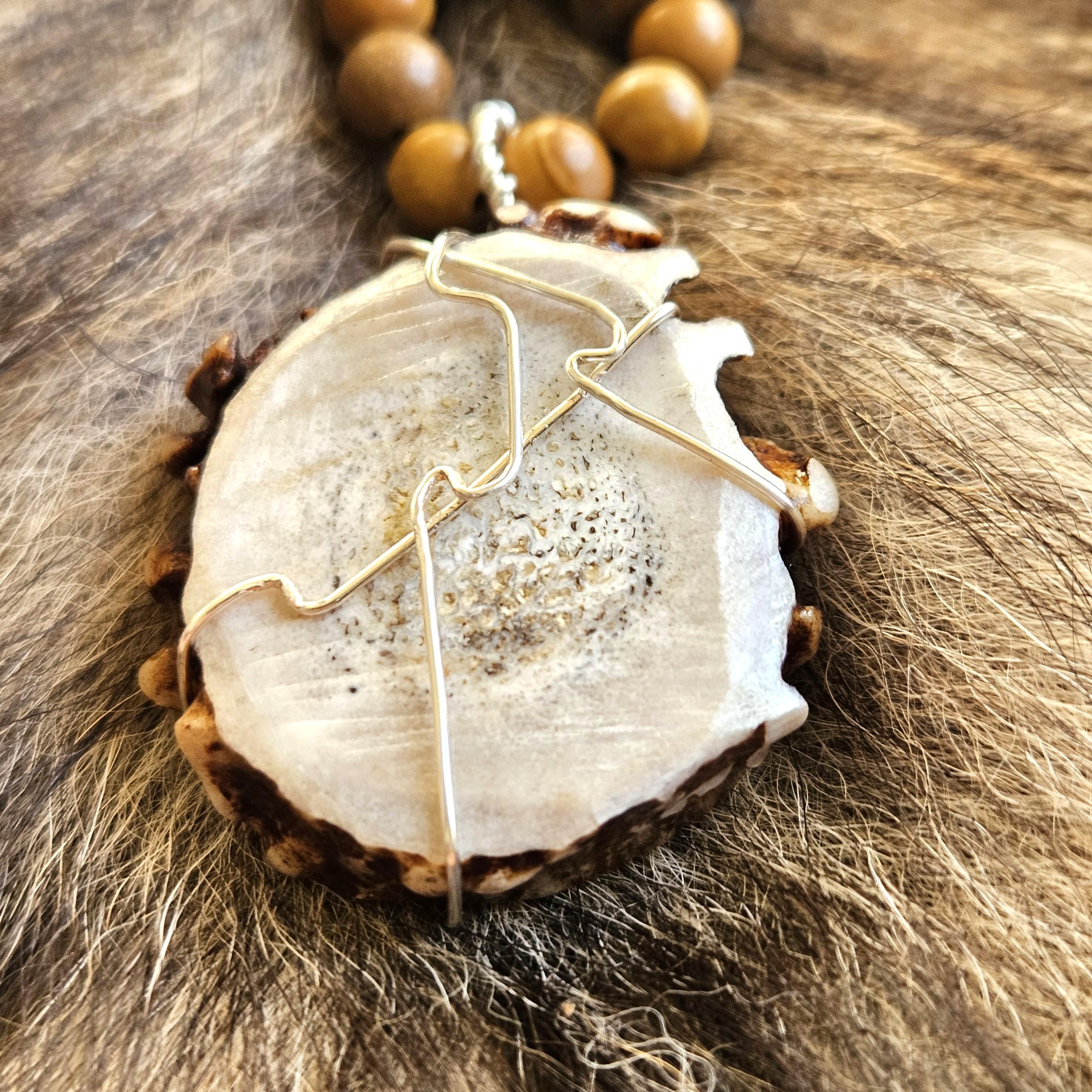 This deer antler necklace not only creates a naturalness and rarity to any beaded necklace but it also will provide a great conversation topic or statement piece! Each antler piece is unique as antlers are like fingerprints thus creating a one-of-a-kind necklace! I never make the same one twice. Each piece is polished smooth for a natural shine and glazed for additional shine and protection to bring out the antlers natural beauty.