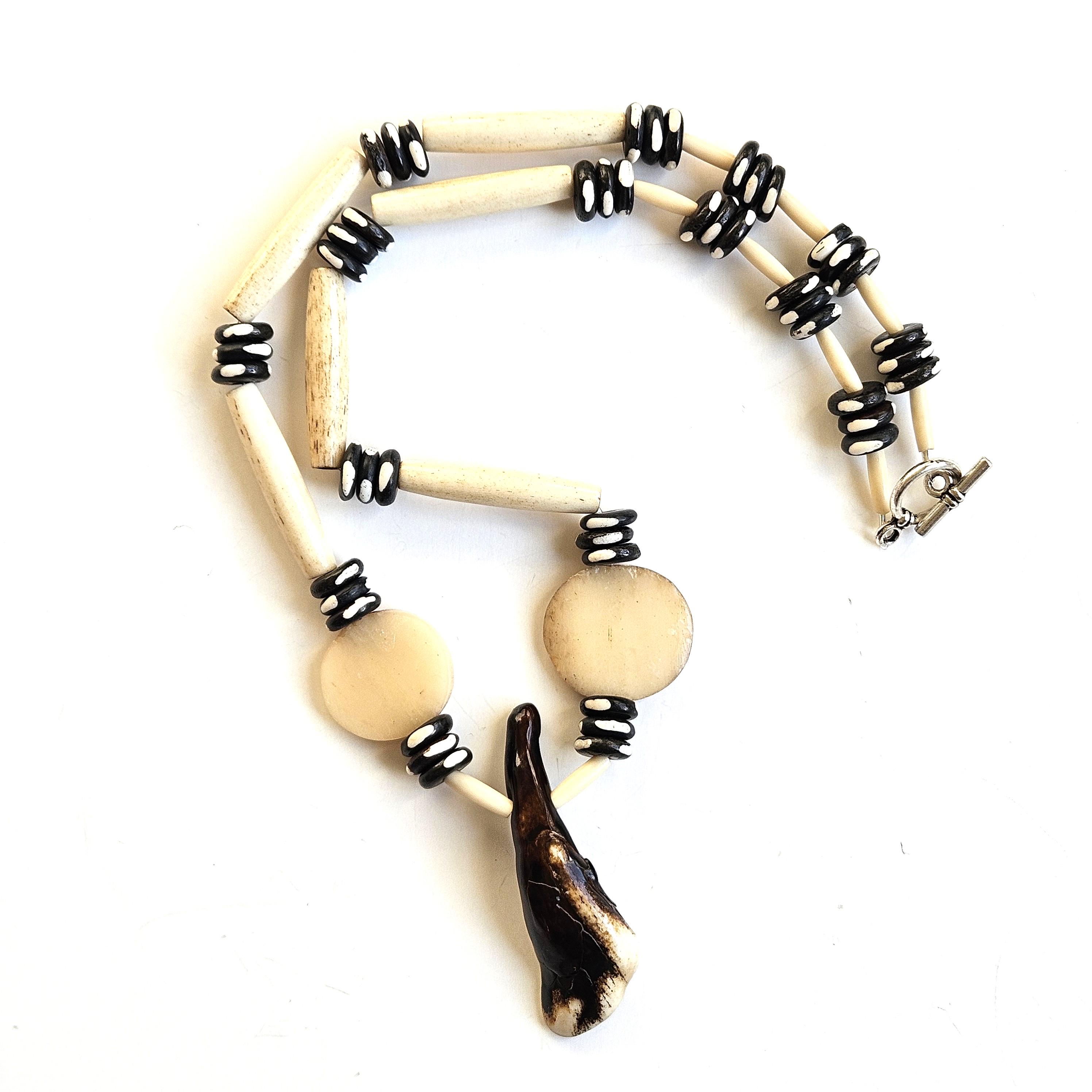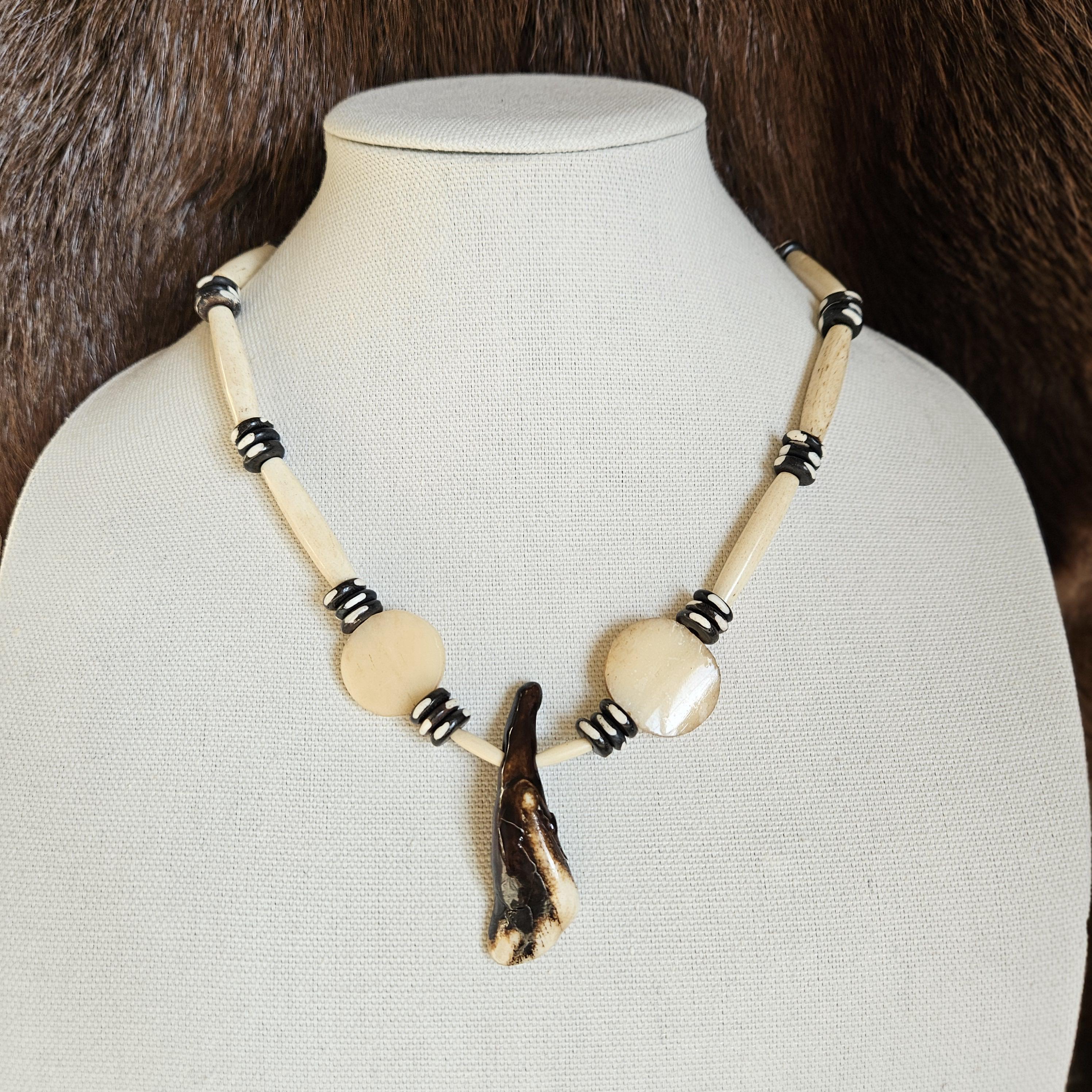 Discover this unique Ojibwe bison tooth beaded necklace, a stunning piece inspired by rich Indigenous heritage. Handcrafted with care, this necklace features a genuine bison tooth elegantly adorned with carefully selected beads. In Native American culture, bison hold sacred significance, representing life, immense strength, abundance, and gratitude. Perfect for adding a touch of culture and charm to any outfit, it also makes a meaningful gift for those who appreciate unique, handcrafted jewelry. Embrace the spirit of the North with this unique wearable art piece. Handmade with love, it’s a true treasure!