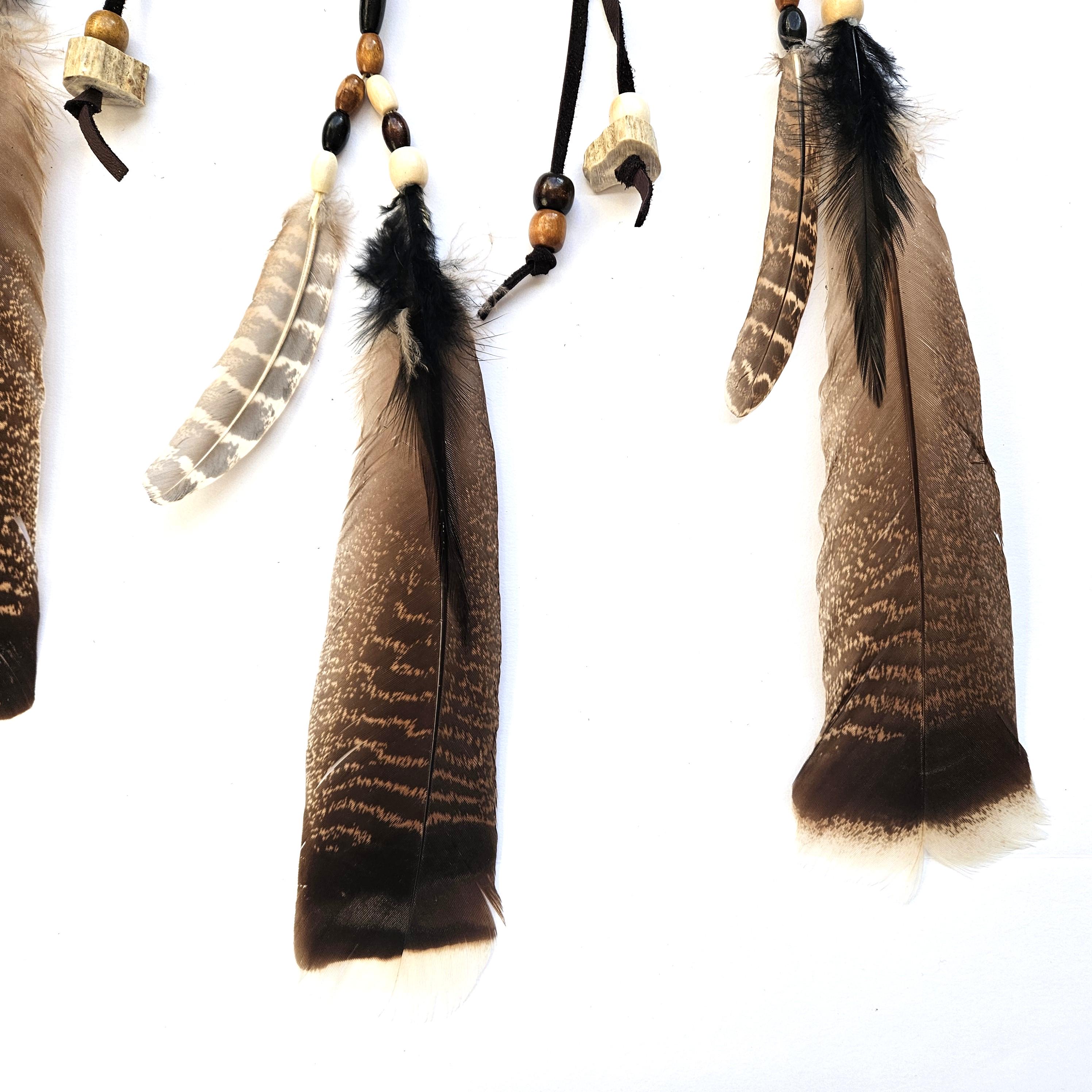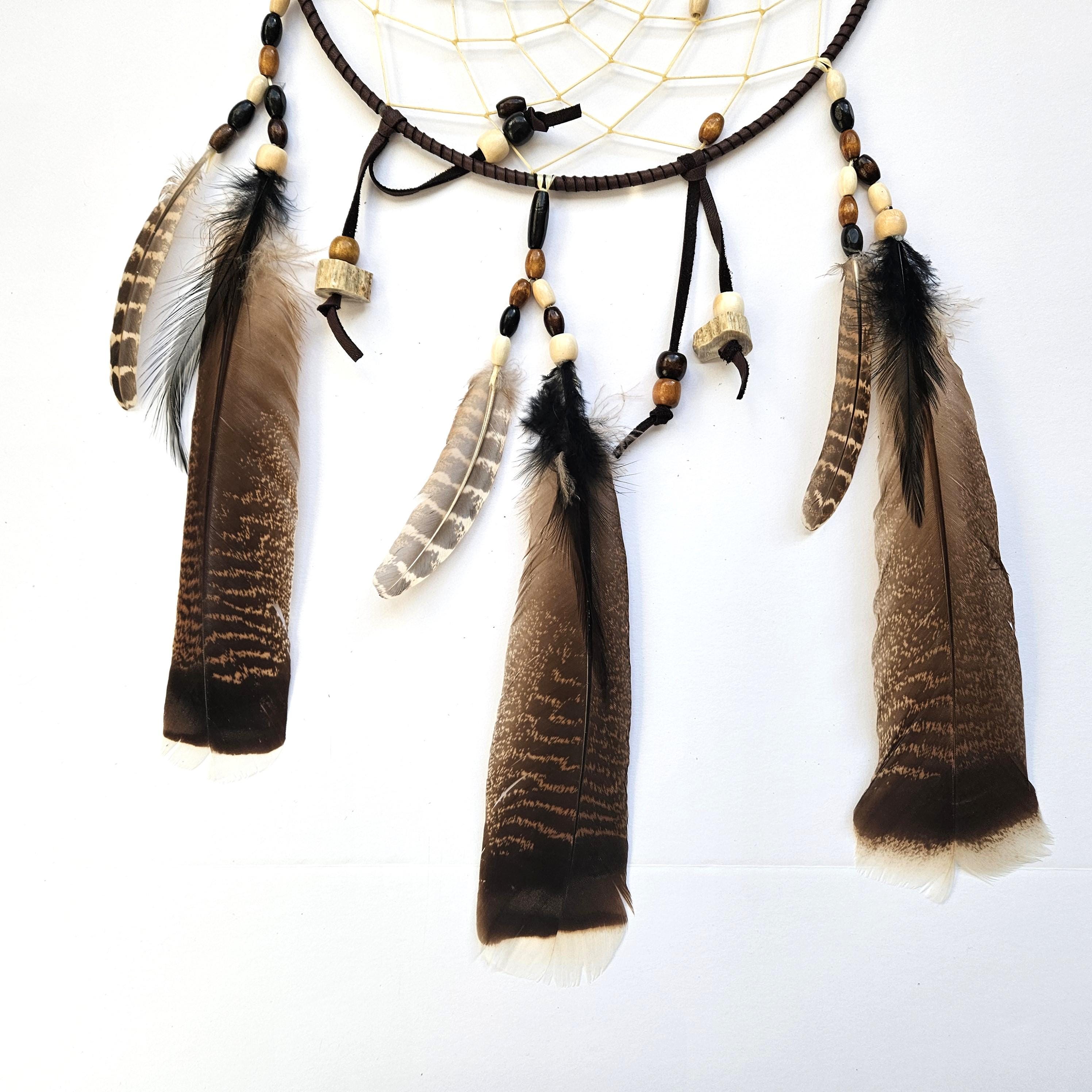 Celebrate the richness of Native American heritage with this Handcrafted Ojibwe Dreamcatcher. This unique creation showcases beautiful wild Wisconsin turkey feathers, genuine deer antler components, and a sturdy leather hoop, with each part carefully chosen for its cultural importance. In Native American tradition, the Deer symbolizes grace, gratitude, agility, and abundance. Ideal for gifting or enhancing your personal space, this captivating dreamcatcher serves as a remarkable statement piece that respects both tradition and craftsmanship. Place it above your bed to ward off nightmares and welcome serene thoughts. Allow this exquisite dreamcatcher to infuse your environment with harmony and spirit!