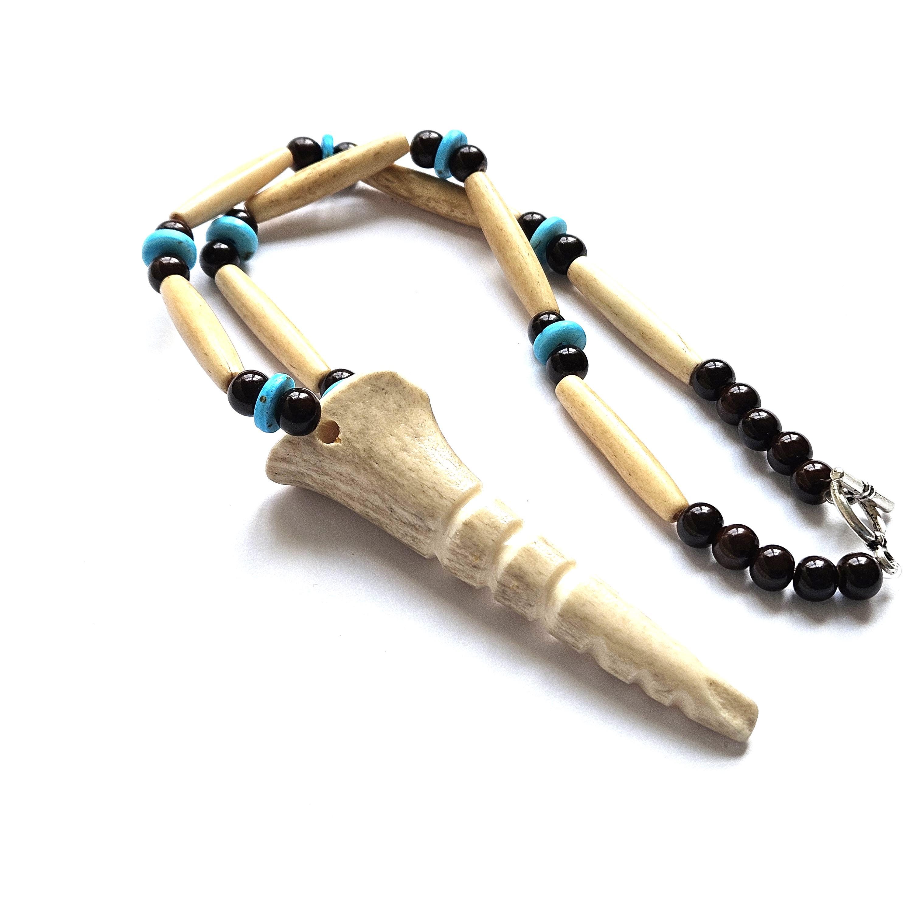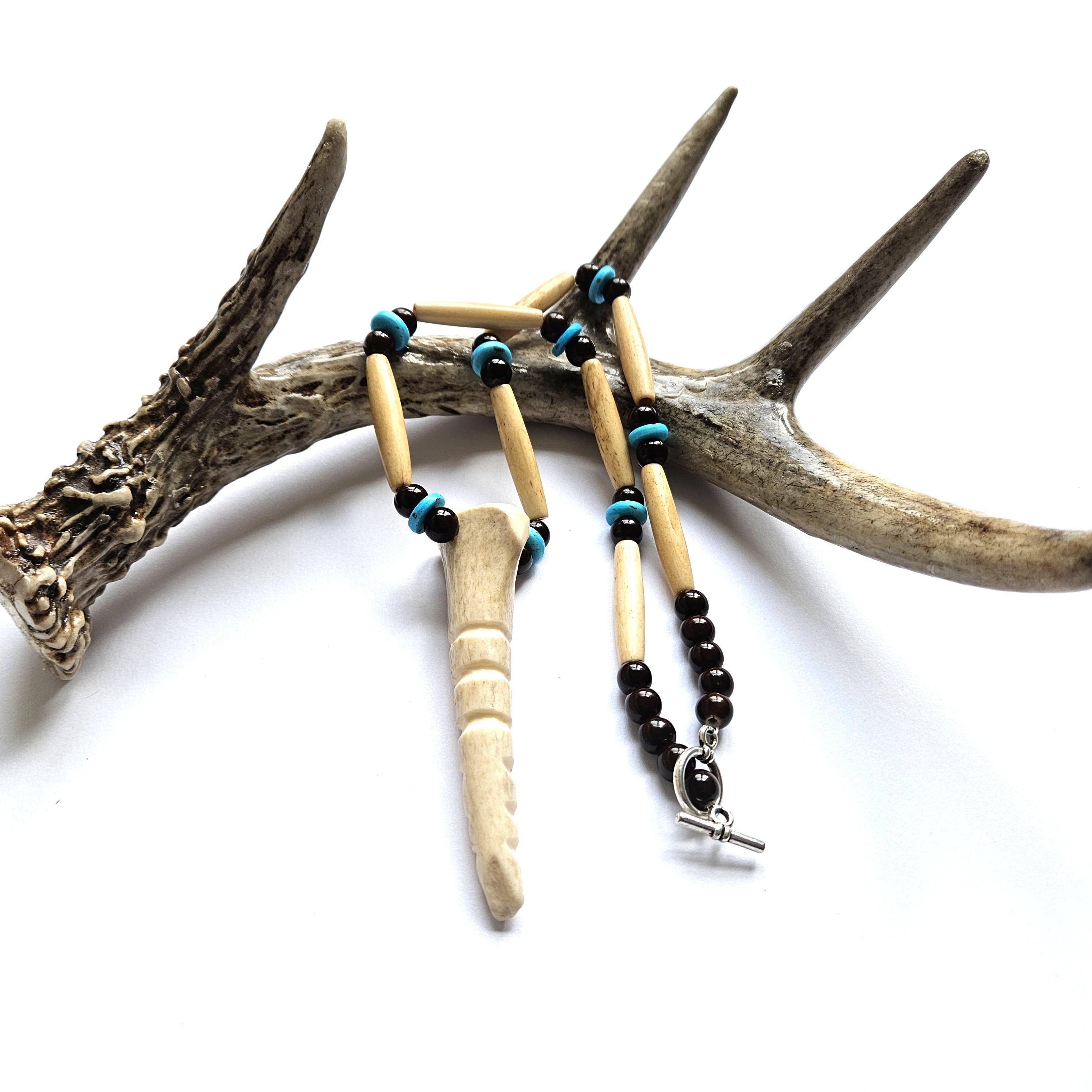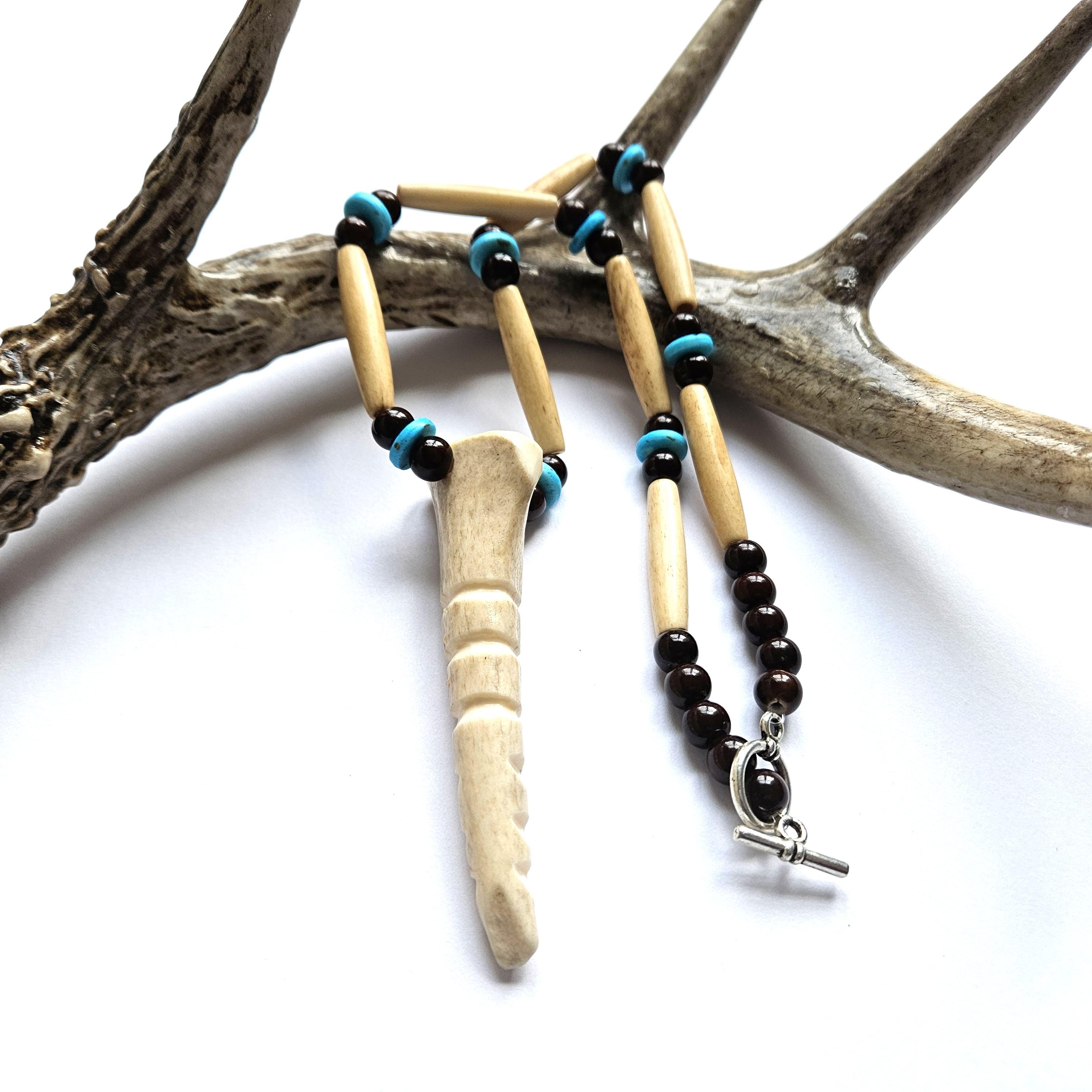 In Native American traditions, the deer embodies grace, gratitude, agility, and prosperity. Additionally, deer are known for their gentle nature, symbolizing sensitivity, intuition, and kindness. Antler adds both a sense of authenticity and uniqueness to any beaded necklace, making it an excellent conversation starter or a standout accessory! Each antler component is distinct, much like fingerprints, resulting in a truly unique necklace! Every piece is meticulously polished to a smooth finish for a natural luster and glazed for extra shine and protection, enhancing the inherent beauty of the antler.