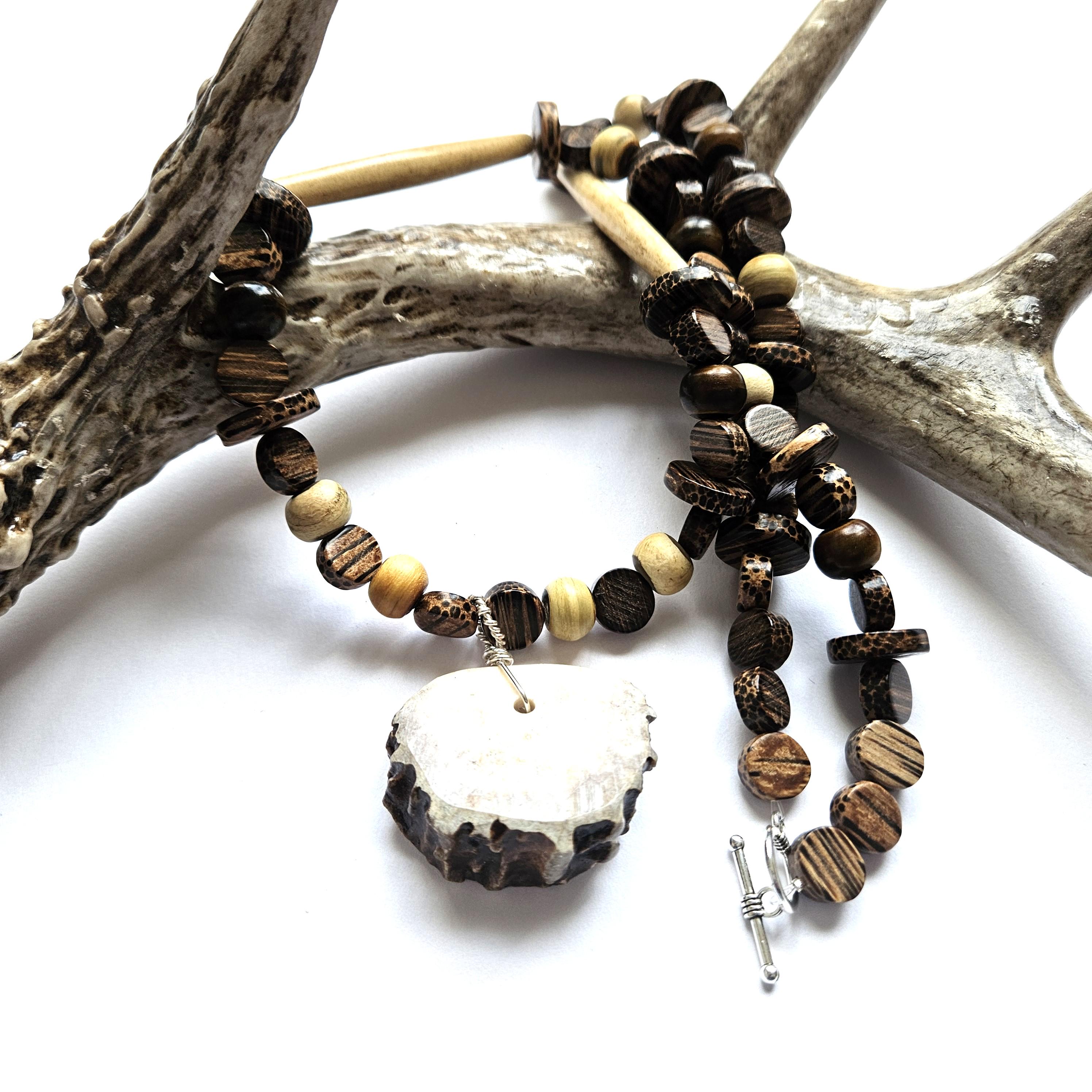 In Native American traditions, the deer embodies grace, gratitude, agility, and prosperity. Additionally, deer are known for their gentle nature, symbolizing sensitivity, intuition, and kindness. Antler adds both a sense of authenticity and uniqueness to any beaded necklace, making it an excellent conversation starter or a standout accessory! Each antler component is distinct, much like fingerprints, resulting in a truly unique necklace! Every piece is meticulously polished to a smooth finish for a natural luster and glazed for extra shine and protection, enhancing the inherent beauty of the antler.