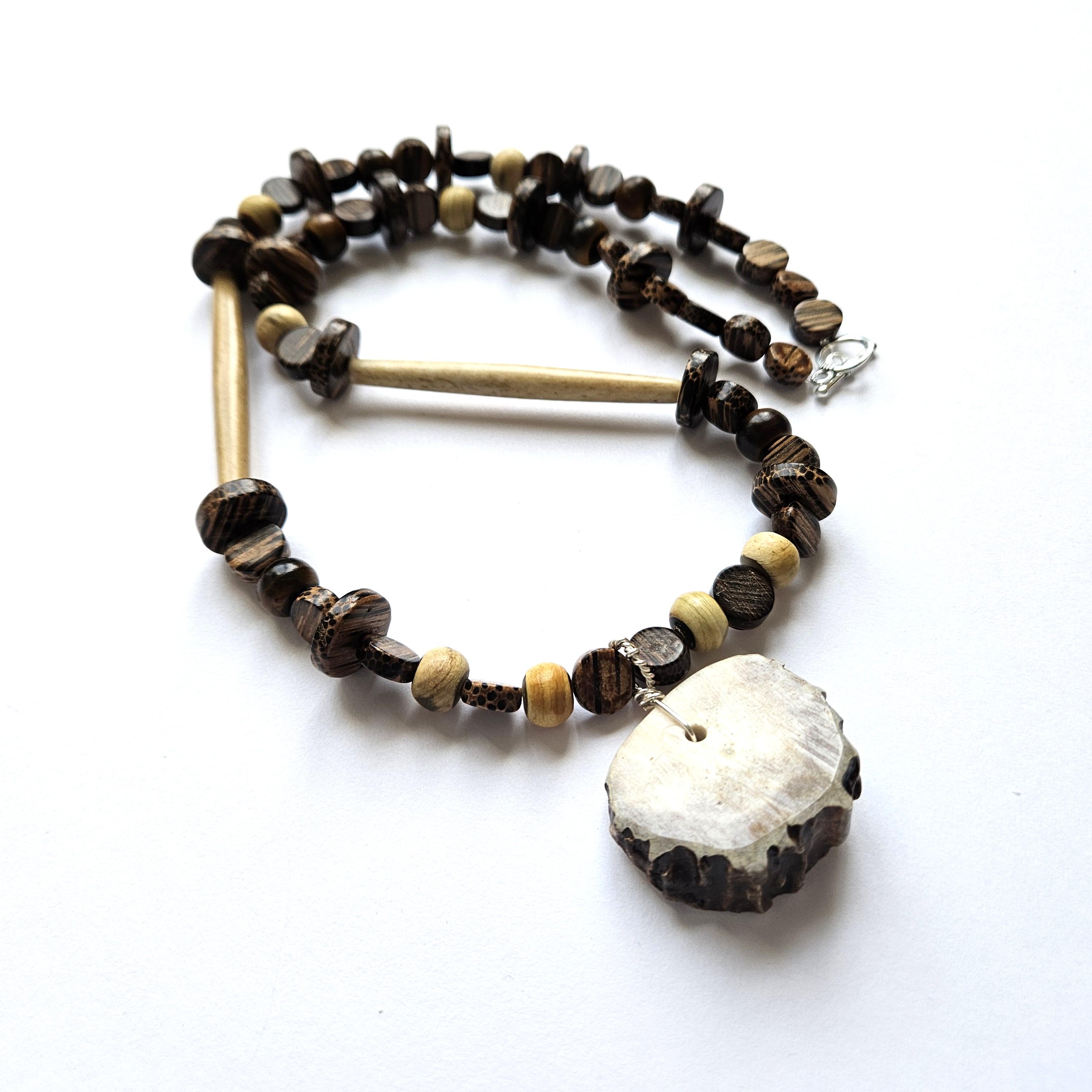 Discover the beauty of this one-of-a-kind Ojibwe deer antler pendant beaded necklace accentuated with horn, wood and glass beads. Made with care and attention to detail, this stunning necklace is not just an accessory, but a meaningful connection to tradition and nature. Perfect for adding a touch of authenticity to your style or as a thoughtful gift. Embrace uniqueness and celebrate cultural heritage with wearable art that tells a story!