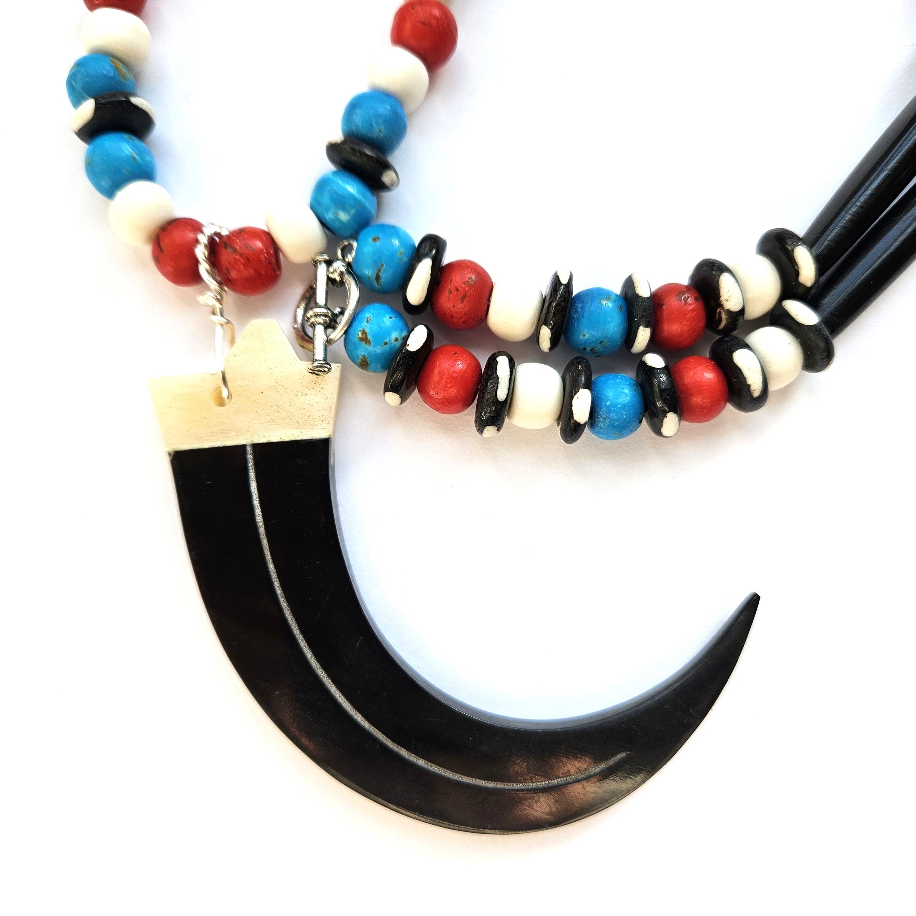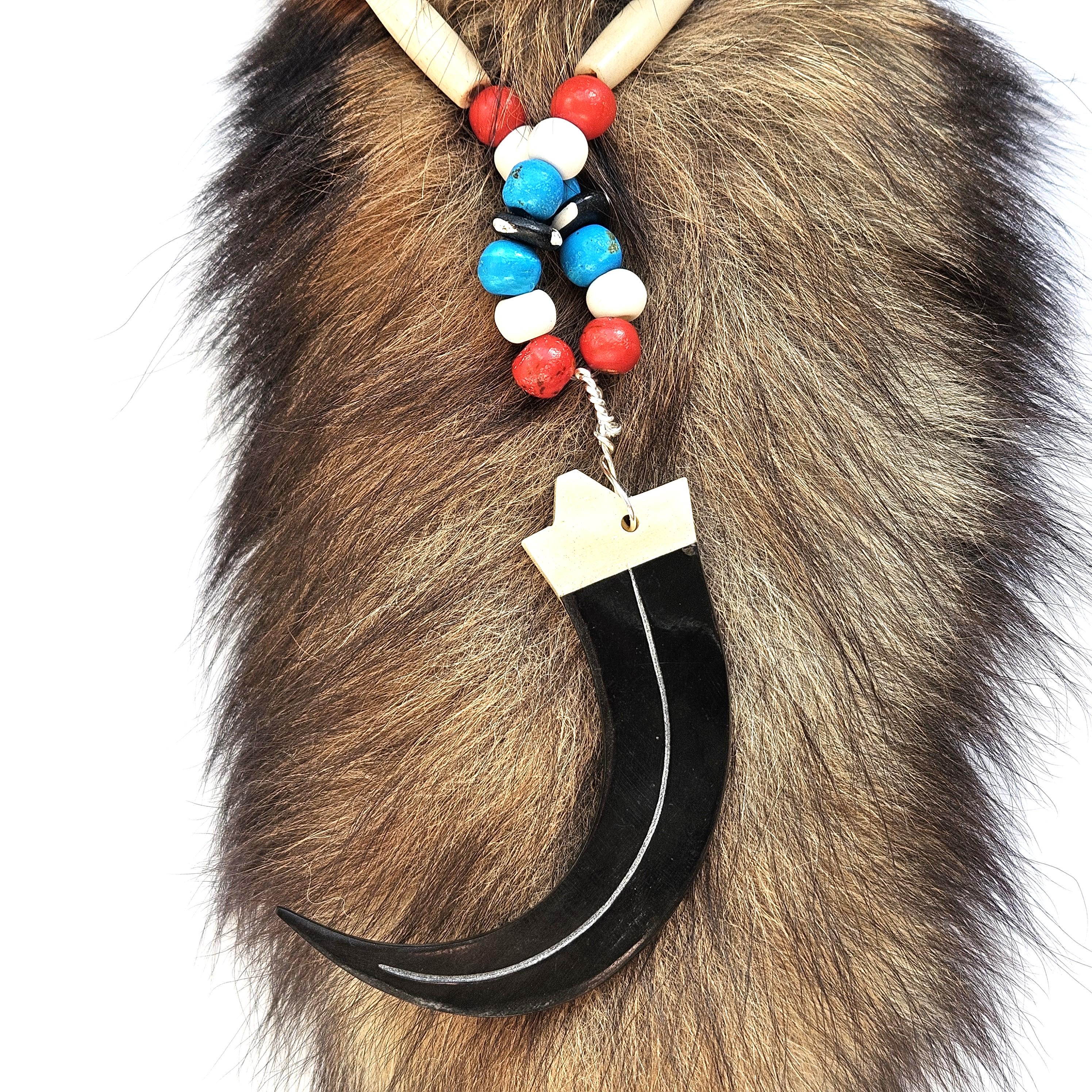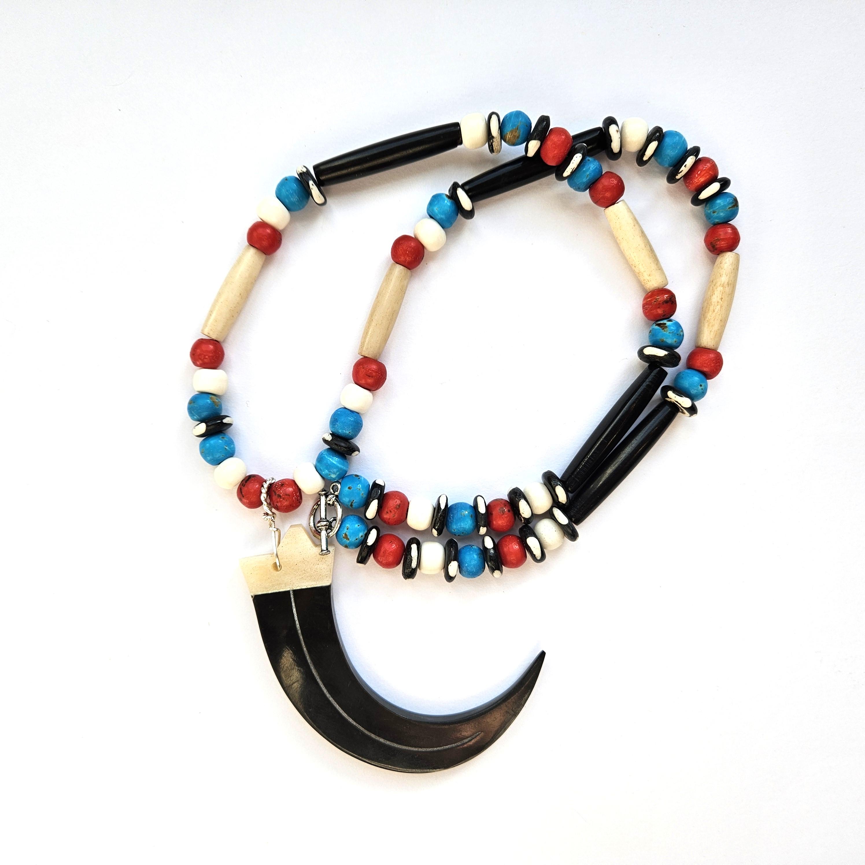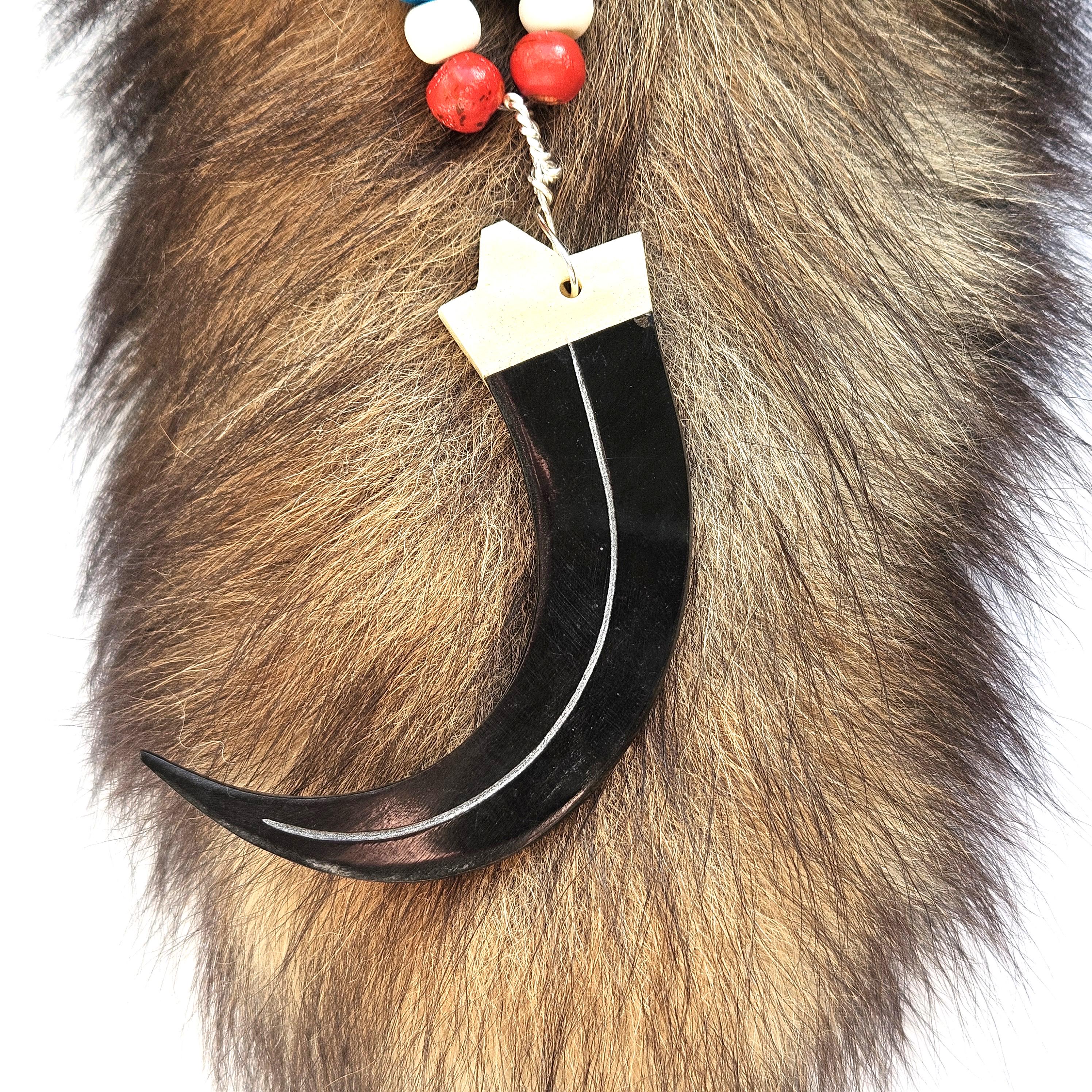 Discover the beauty of this one-of-a-kind Ojibwe bone claw pendant necklace accented with hairpin bone beads, round painted bone beads, and bone saucer beads. Made with care and attention to detail, this stunning necklace is not just an accessory, but a meaningful connection to tradition and nature. Perfect for adding a touch of authenticity to your style or as a thoughtful gift. Embrace uniqueness and celebrate cultural heritage with wearable art that tells a story!