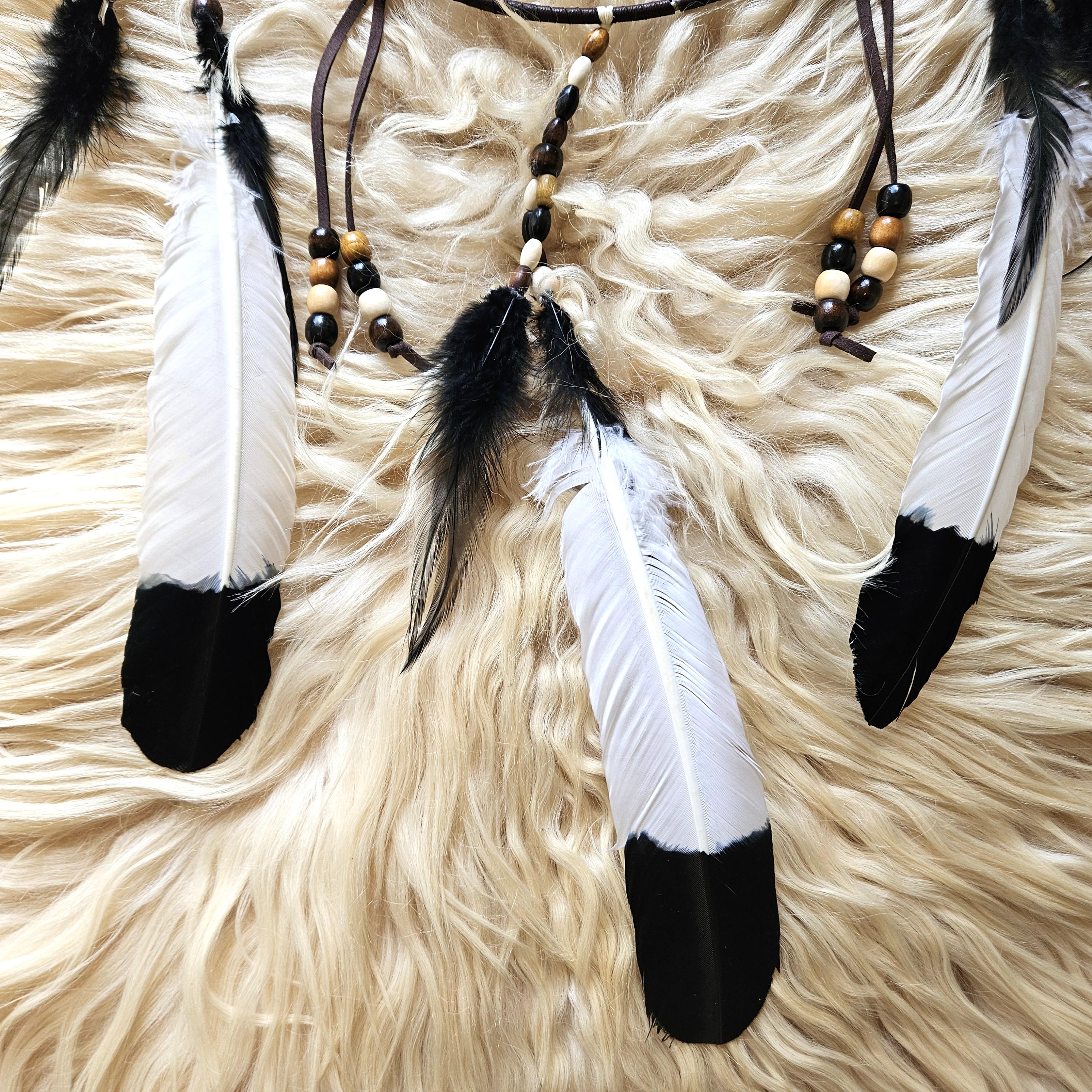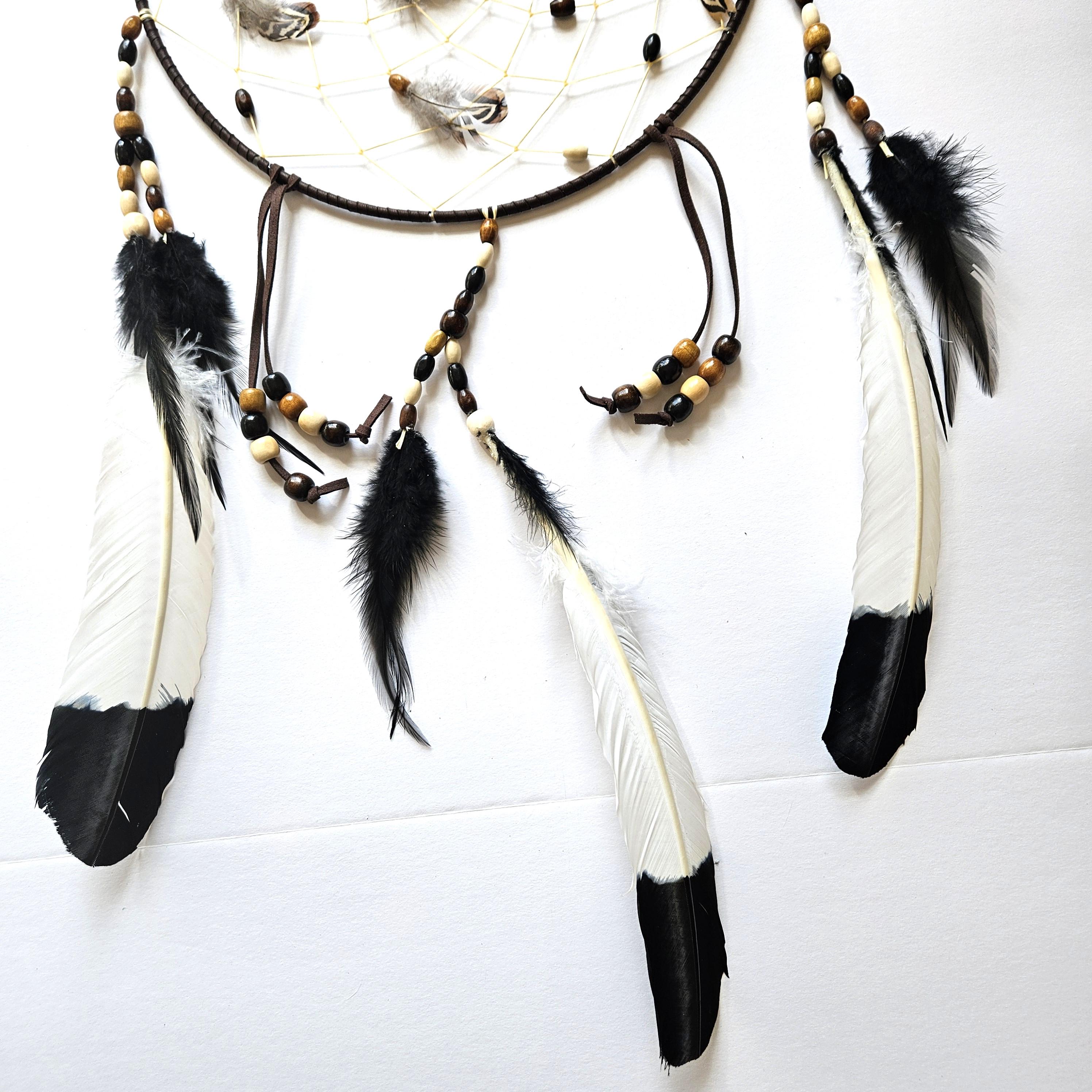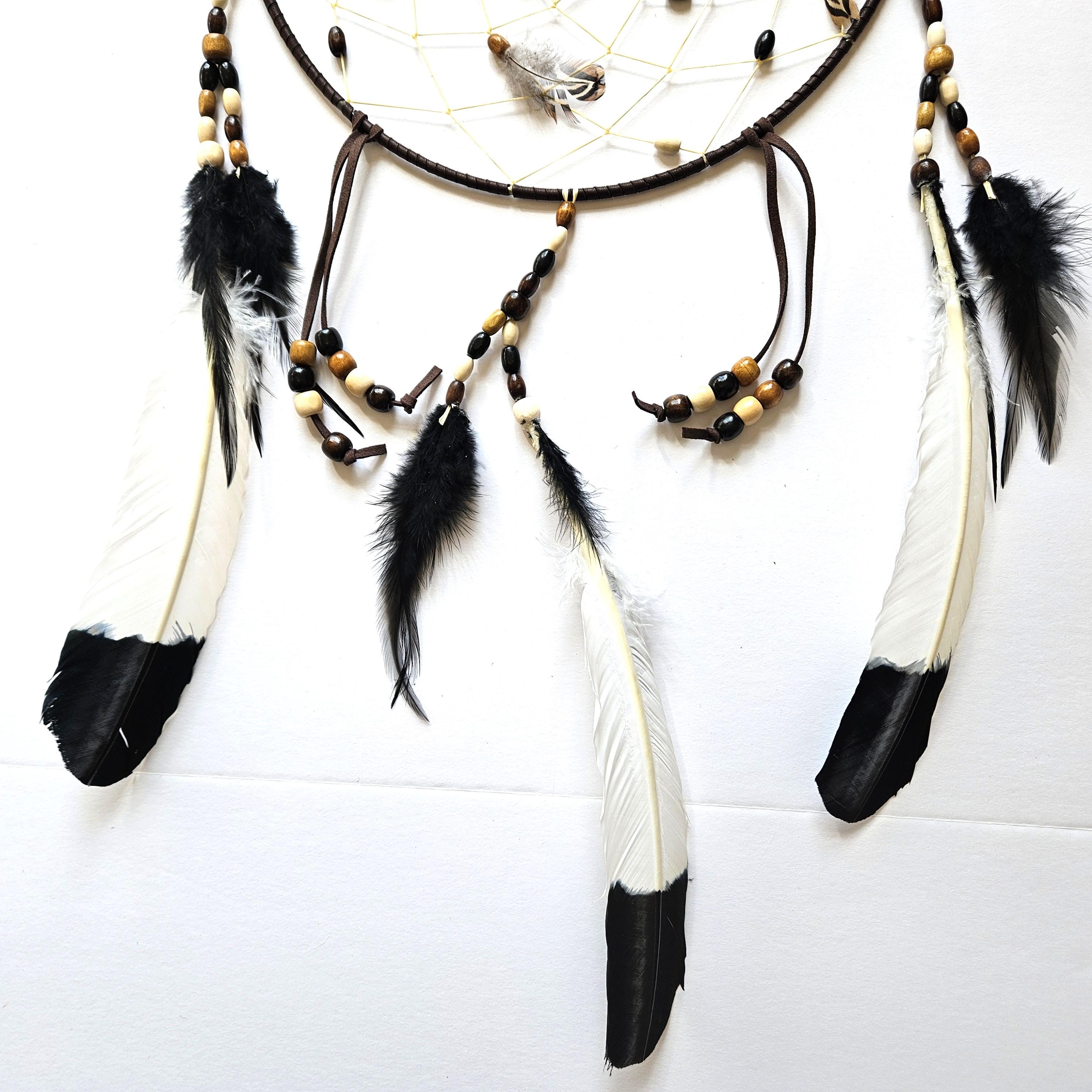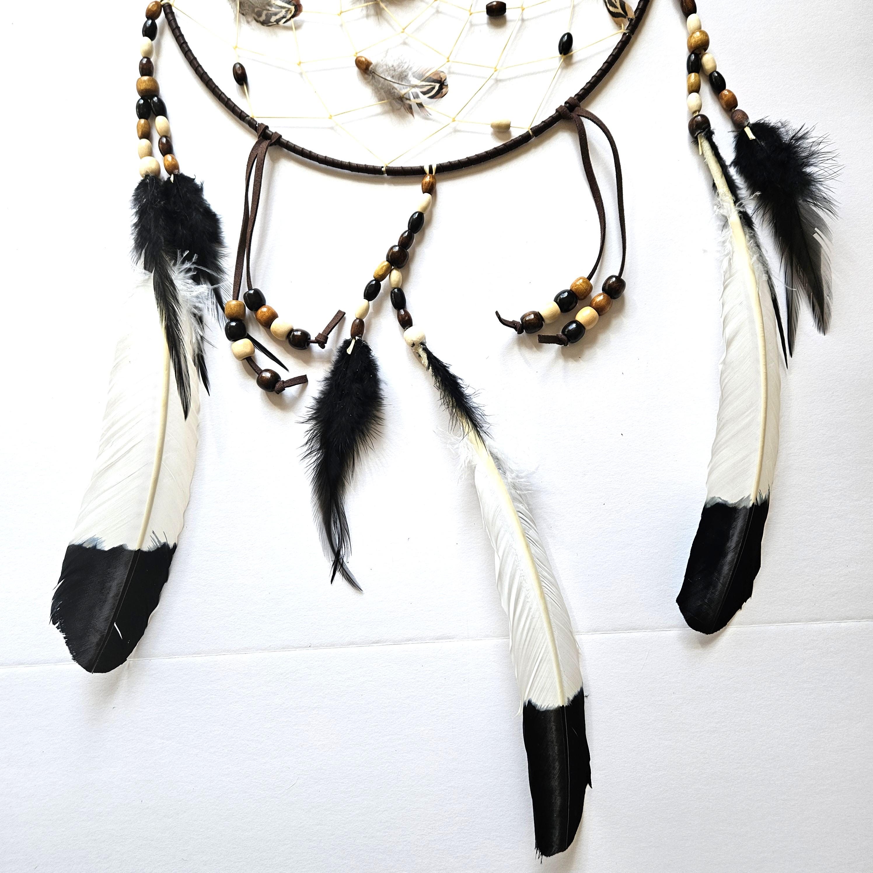Celebrate the richness of Native American heritage with this Handcrafted Ojibwe Dreamcatcher. This unique creation showcases beautiful imitation eagle feathers (died goose feathers) and a sturdy chocolate leather hoop, with each part carefully chosen for its cultural importance. In Native American tradition, the Deer symbolizes grace, gratitude, agility, and abundance. Ideal for gifting or enhancing your personal space, this captivating dreamcatcher serves as a remarkable statement piece that respects both tradition and craftsmanship. Place it above your bed to ward off nightmares and welcome serene thoughts. Allow this exquisite dreamcatcher to infuse your environment with harmony and spirit!
