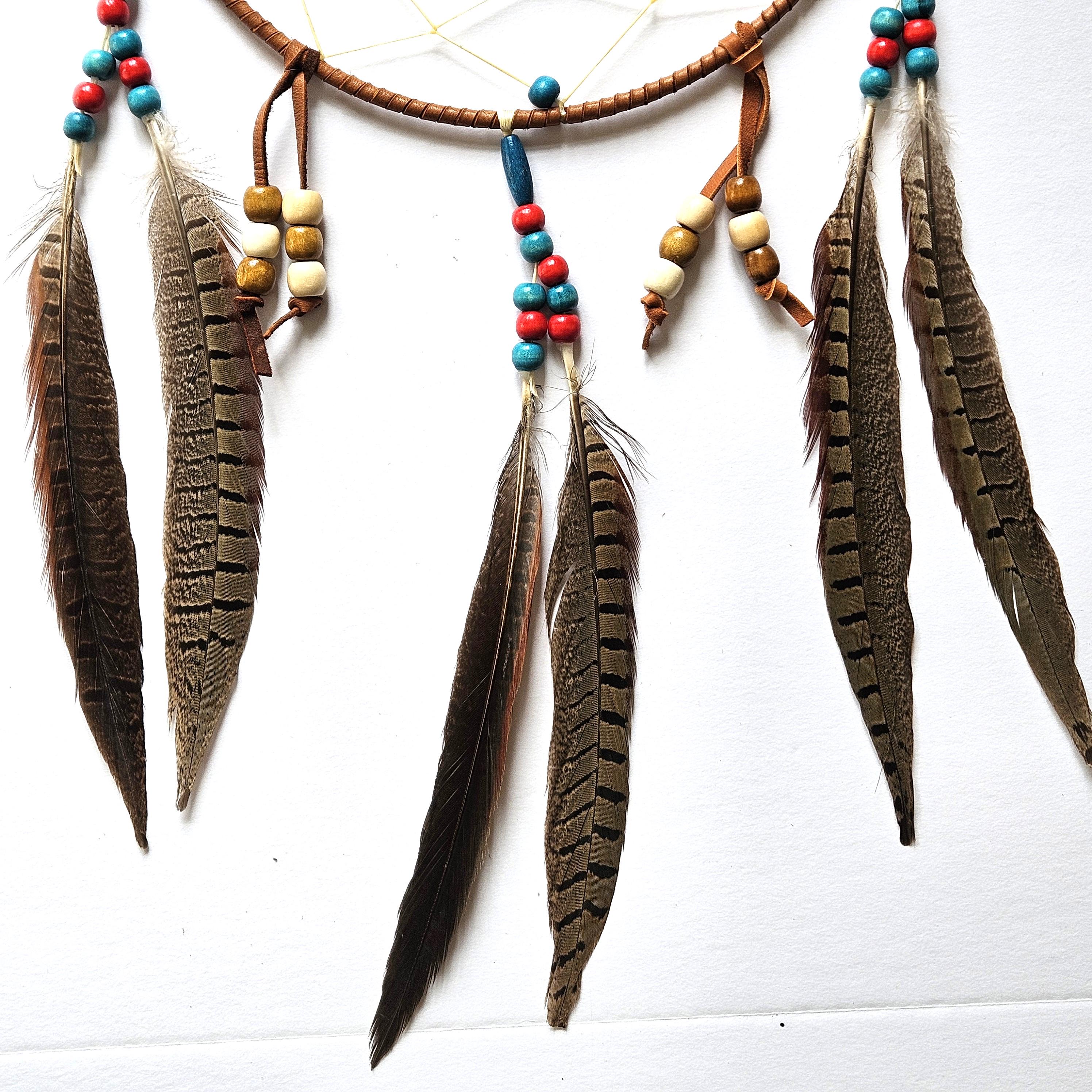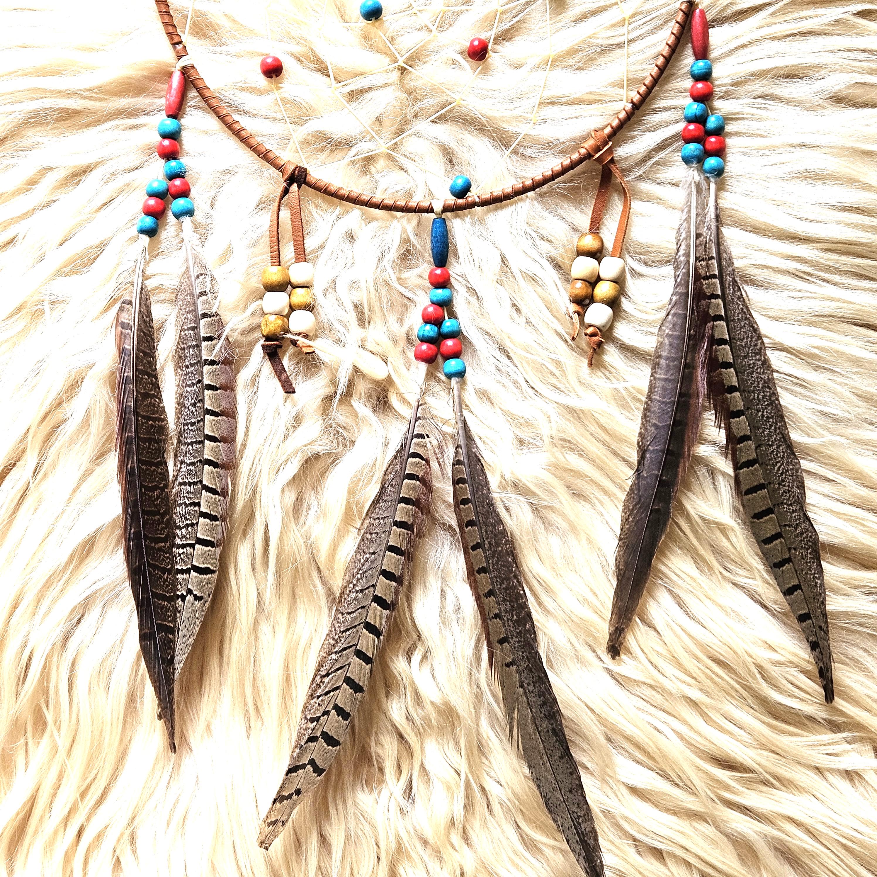 Celebrate the richness of Native American heritage with this Handcrafted Ojibwe Dreamcatcher. This unique creation showcases beautiful wild Wisconsin pheasant feathers and a sturdy leather hoop, with each part carefully chosen for its cultural importance. In Native American tradition, the Deer symbolizes grace, gratitude, agility, and abundance. Ideal for gifting or enhancing your personal space, this captivating dreamcatcher serves as a remarkable statement piece that respects both tradition and craftsmanship. Place it above your bed to ward off nightmares and welcome serene thoughts. Allow this exquisite dreamcatcher to infuse your environment with harmony and spirit!